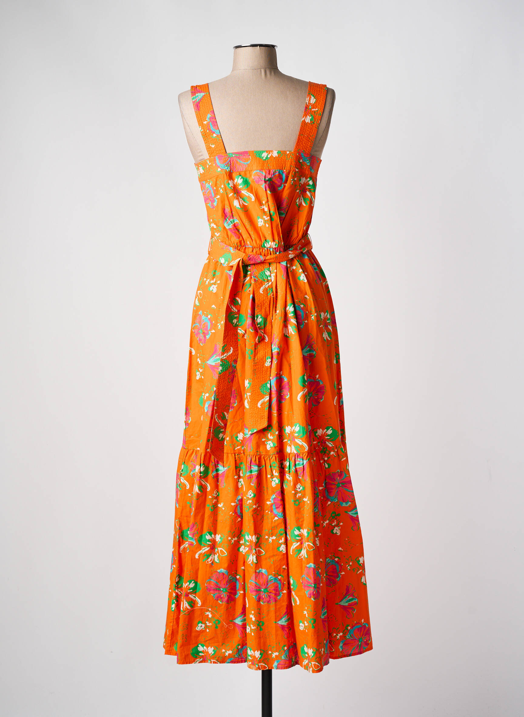 Profitez d’un look éclatant à petit prix avec cette robe longue C’EST BEAU LA VIE, idéale pour donner du peps à votre garde-robe sans vous ruiner. Avec son tissu orange lumineux parsemé d’imprimés fleuris, ses larges bretelles et sa coupe fluide, elle mise sur le confort tout en apportant une touche joyeuse et féminine à vos journées ensoleillées ou à vos vacances, le tout à un tarif ultra avantageux.