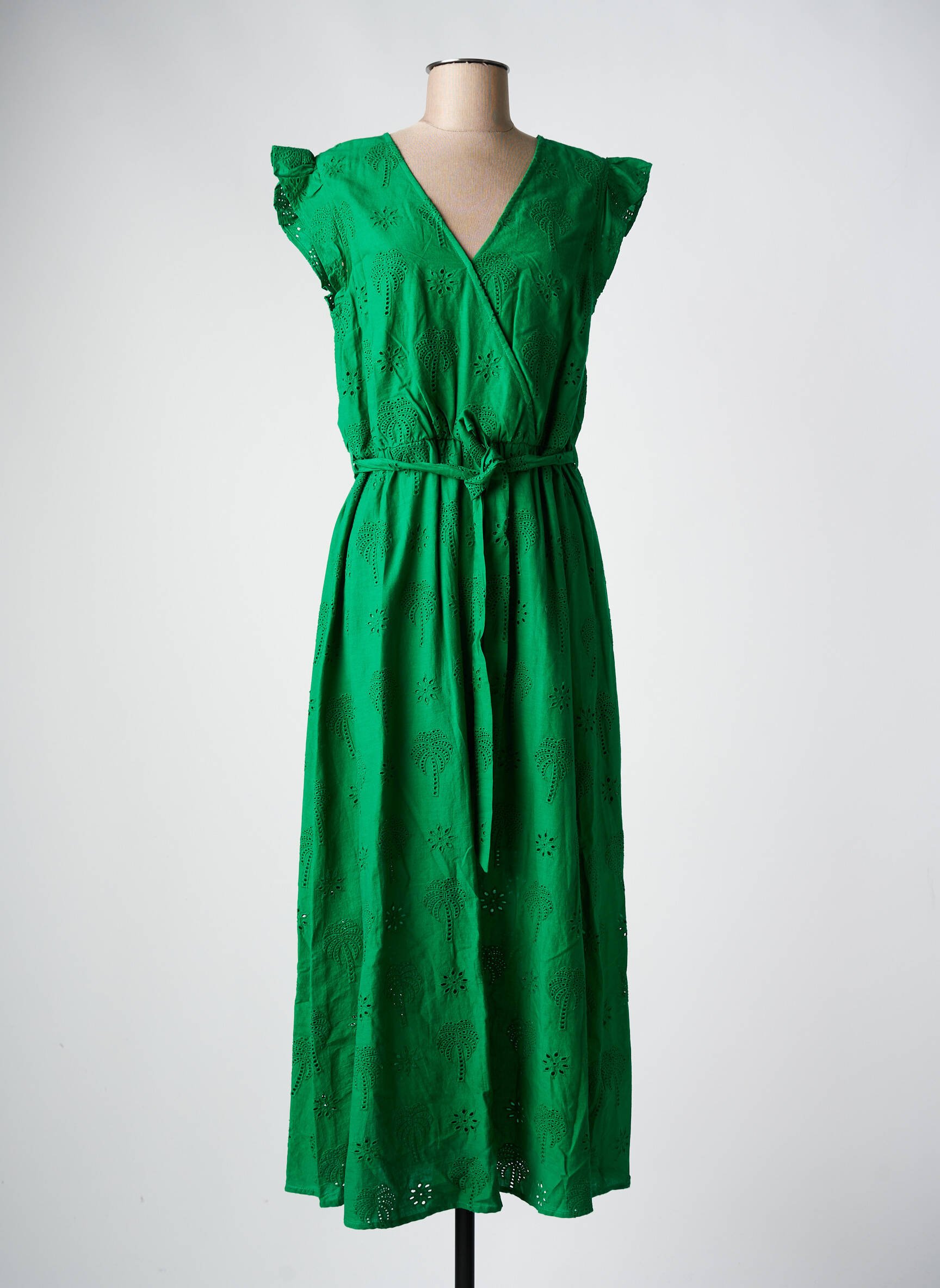 Profitez d'une occasion unique de vous offrir une robe longue C'EST BEAU LA VIE à petit prix sans compromis sur le style, avec ce modèle éclatant vert vif qui apporte immédiatement une touche de fraîcheur à votre garde-robe. Sa coupe portefeuille élégante et féminine, ornée de discrètes broderies ajourées, s'ajuste parfaitement grâce à sa ceinture à nouer qui souligne la taille tout en douceur. Les petites manches à volants ajoutent une note bohème délicate pour une allure tendance, idéale à porter lors des beaux jours, tout en réalisant de vraies économies sur une pièce de marque.
