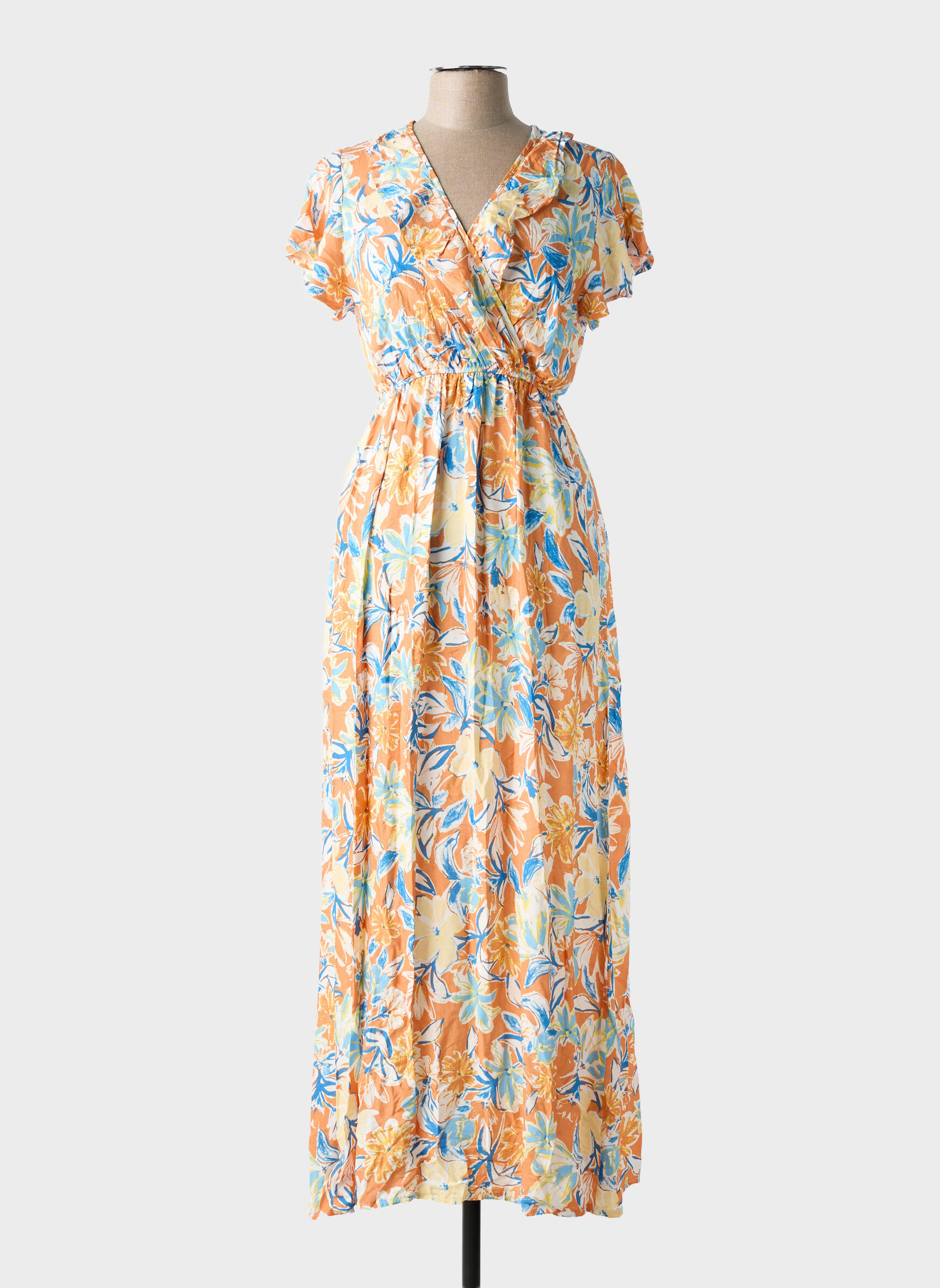 Craquez pour cette robe longue C'FLO pour femme, un véritable bon plan pour illuminer votre dressing sans vous ruiner. Avec son motif floral éclatant dans des tons orange et bleu, sa coupe fluide et son détail croisé au niveau du décolleté, elle incarne parfaitement la pièce chic et abordable pour vos journées ensoleillées ou vos sorties estivales. Profitez d’un look tendance à prix doux en misant sur ce modèle aussi confortable qu’élégant, idéal pour allier style et économie.