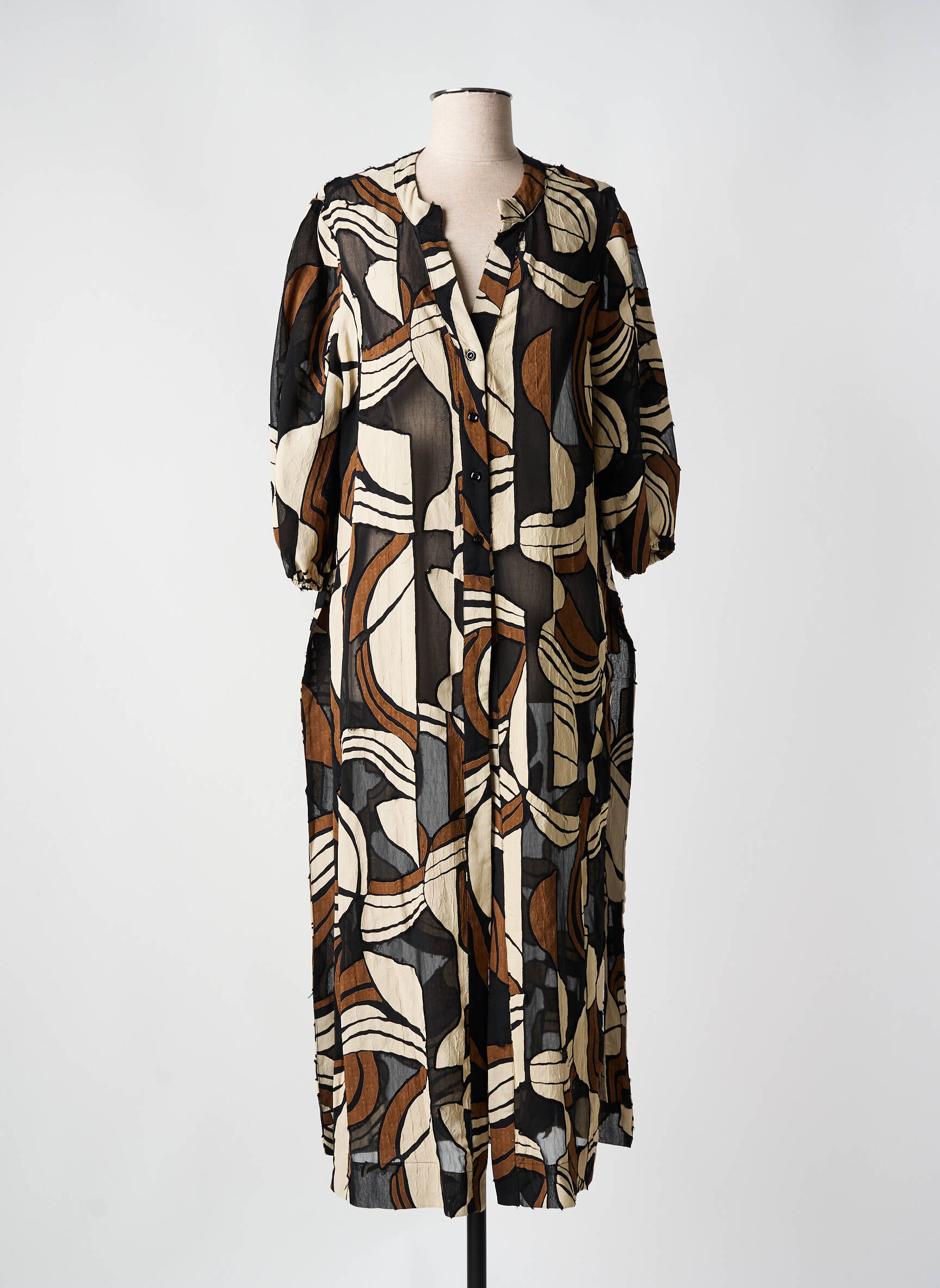 Plongez dans un univers où l’art rencontre la mode avec cette robe longue de la marque CARLA MONTANARINI. Évoquant la liberté et la créativité, ce modèle arbore un motif audacieux mêlant des formes organiques et des teintes chaleureuses qui se déclinent en harmonies de brun et de beige. Sa silhouette fluide, complétée par des manches élégantes, apporte une touche de légèreté tout en offrant un confort optimal. Facile à porter, cette robe se transforme selon les occasions, que ce soit pour une sortie décontractée ou un événement plus habillé. Un véritable hommage à l’expression personnelle, elle saura séduire les amoureuses de la mode contemporaine.