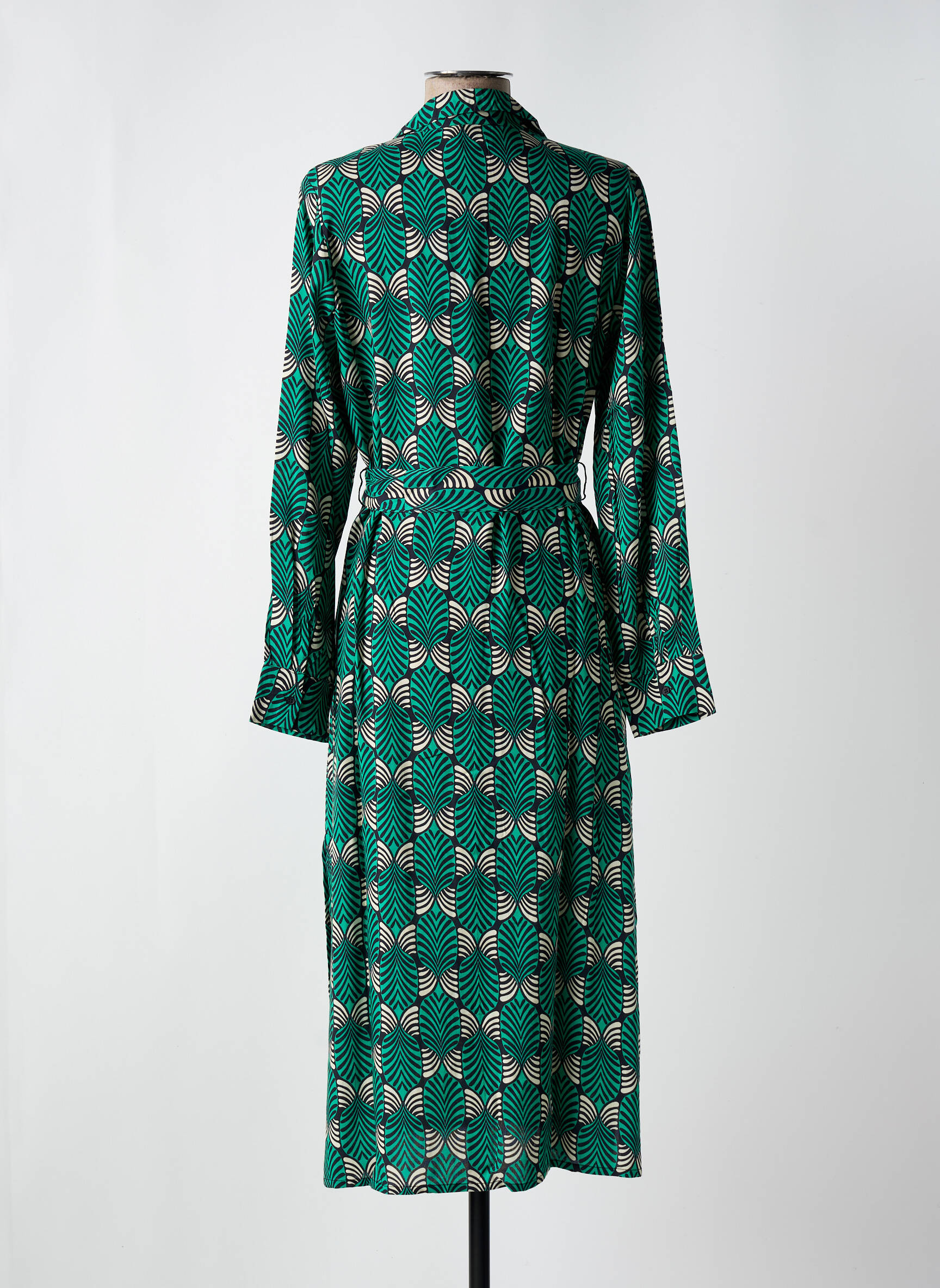 Craquez pour cette robe longue signée COMPAÑIA FANTASTICA, une véritable aubaine à prix mini pour sublimer votre garde-robe. Son motif feuillage graphique sur fond vert apporte une touche originale et moderne, tandis que la coupe fluide et la ceinture à nouer mettent en valeur la silhouette. Idéale pour toutes les occasions, cette robe élégante vous assure un look tendance sans vous ruiner.