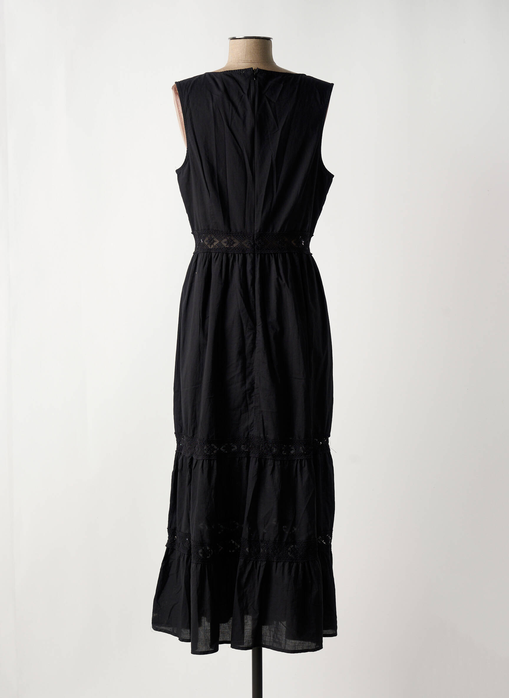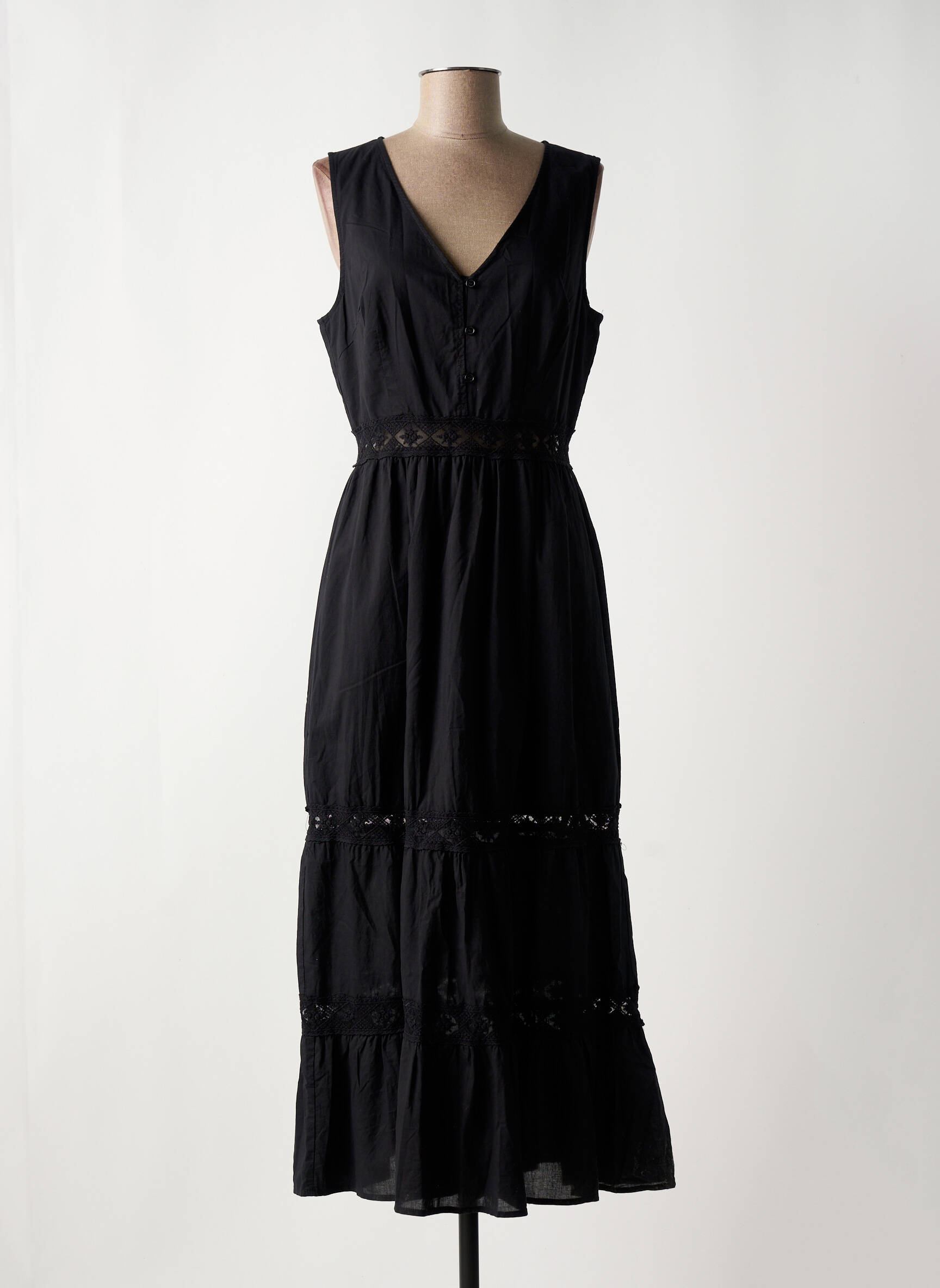 Profitez d’un vrai bon plan avec cette robe longue DEELUXE pour femme, parfaite pour ajouter une touche d’élégance à votre dressing sans vous ruiner. Sa coupe fluide et légère met subtilement la silhouette en valeur, tandis que le détail ajouré souligne la taille et les découpes des volants pour un look raffiné et frais. Idéale à porter aussi bien en journée qu’en soirée, cette robe noire sobre reste un choix malin pour celles qui veulent se faire plaisir à petit prix, sans compromis sur le style.