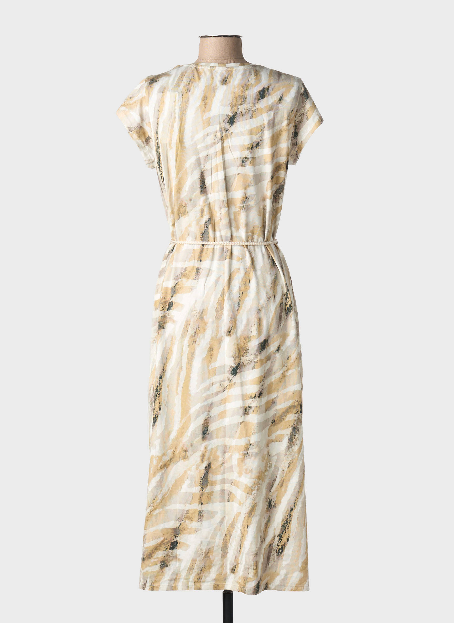 Robe Longue Eva Kayan Beige Manches Courtes