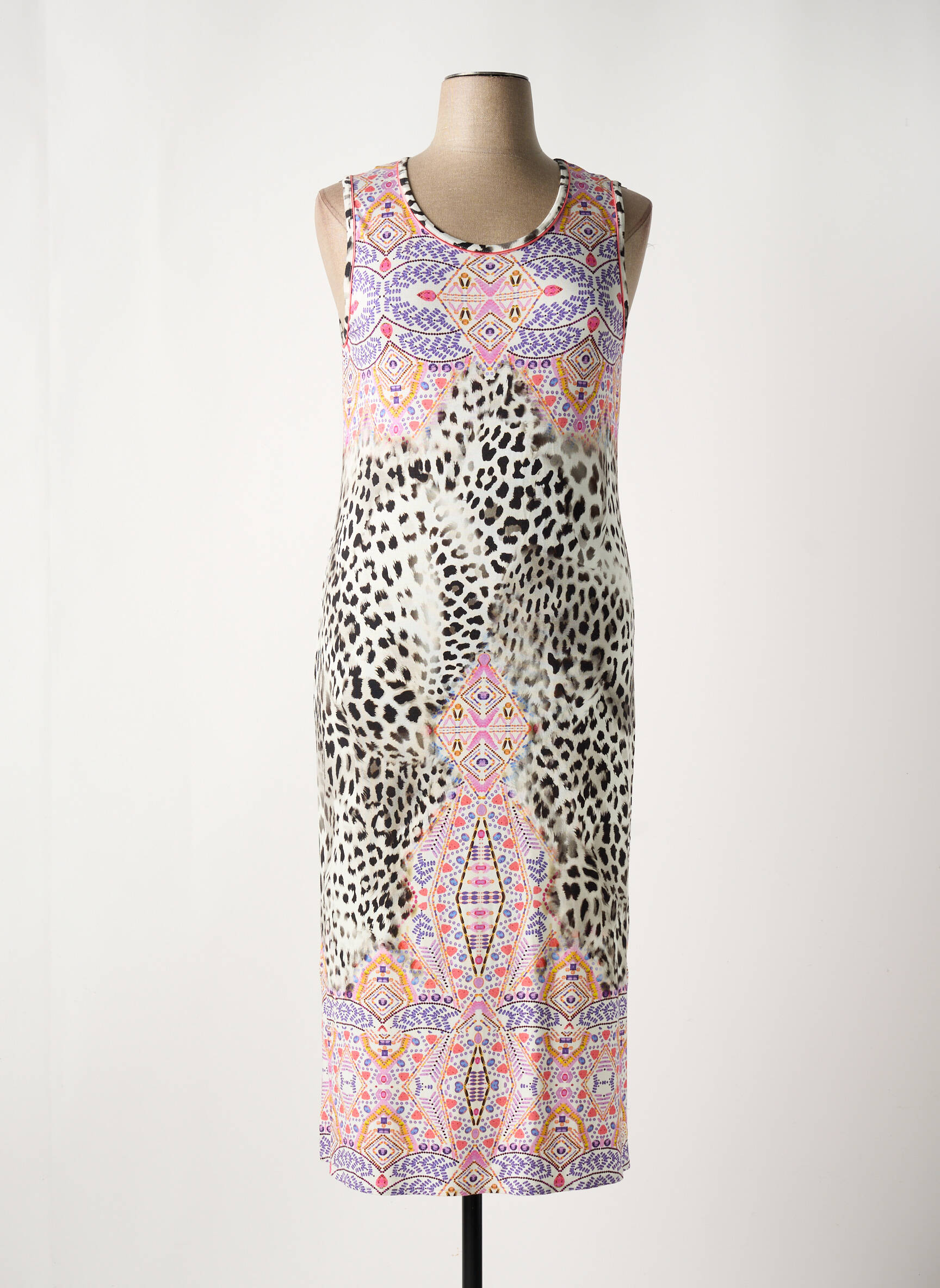 Voici une occasion à ne pas manquer pour ajouter une touche d’élégance à petit prix à votre dressing grâce à cette robe longue FERAUD pour femme. Avec sa coupe sans manches et son encolure arrondie, elle séduit par son imprimé original mêlant effets léopard et motifs graphiques colorés qui apportent une touche de modernité et d’exotisme. Idéale pour vos journées d’été ou vos soirées décontractées, cette pièce met en avant style et confort tout en vous assurant une vraie bonne affaire sur une grande marque.