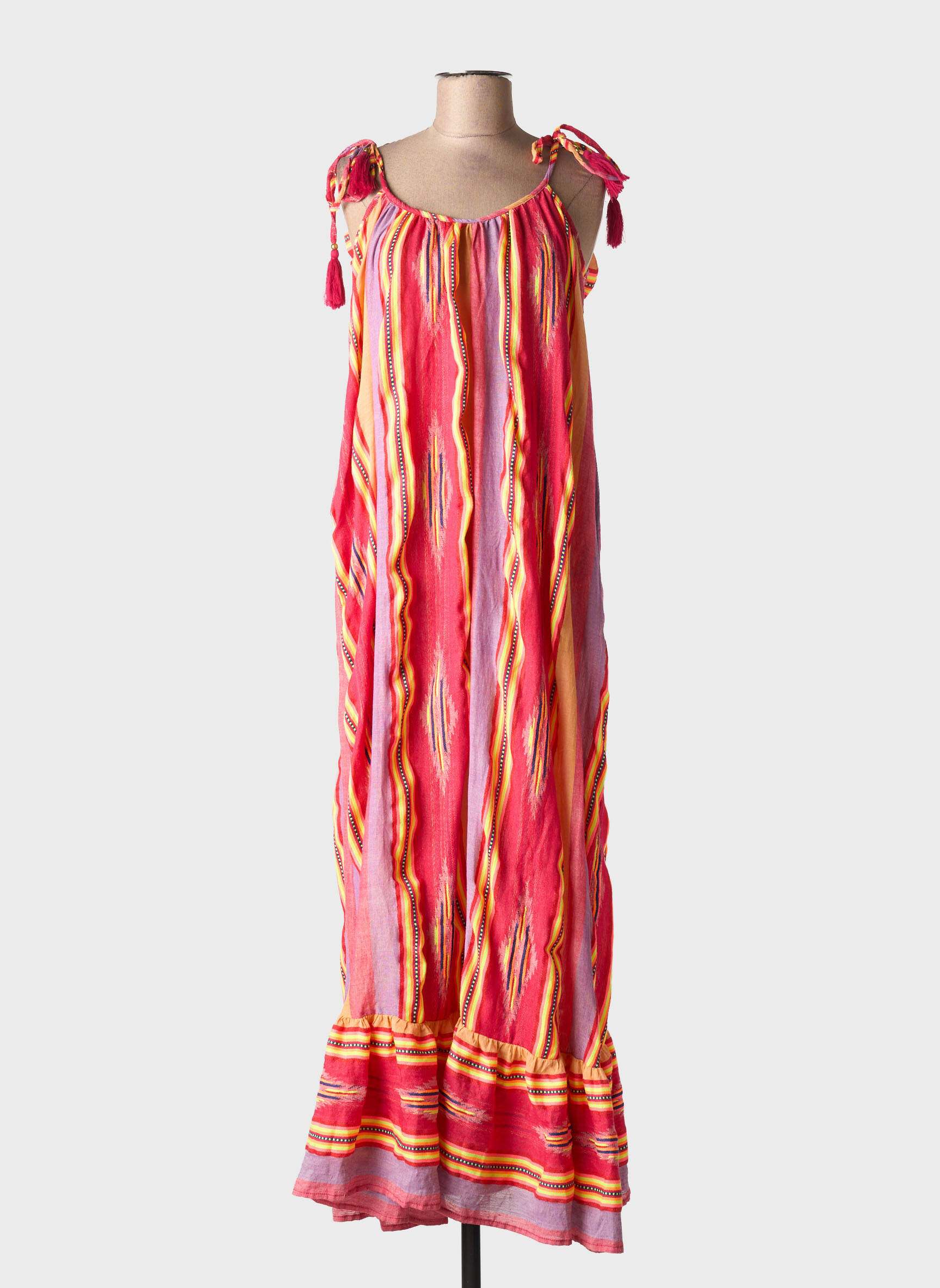 Profitez d’un bon plan incontournable avec cette robe longue GOLD&SILVER PARIS, idéale pour apporter une touche de fraîcheur et de couleur à votre dressing à petit prix. Son imprimé graphique aux teintes vives et festives sublime la silhouette tout en offrant une grande liberté de mouvement grâce à sa coupe ample et légère, et ses liens noués sur les épaules ajoutent une note féminine délicate. Ne manquez pas cette pièce tendance au style bohème parfait, accessible à prix doux pour égayer votre été sans vous ruiner.