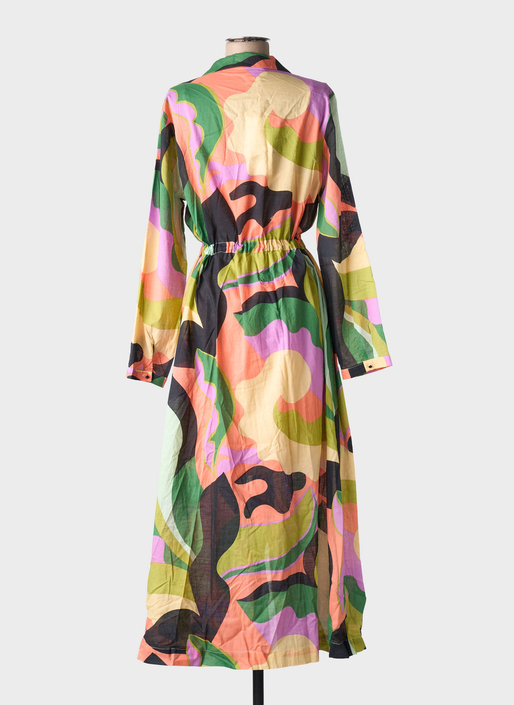 Craquez pour cette robe longue GRACE & MILA à prix tout doux, parfaite pour illuminer votre garde-robe sans vous ruiner. Son imprimé graphique multicolore dynamise la silhouette, tandis que la coupe fluide et la ceinture à nouer soulignent la taille avec élégance. Idéale pour un look tendance et original à petit prix, elle se porte aussi bien en journée qu’en soirée.