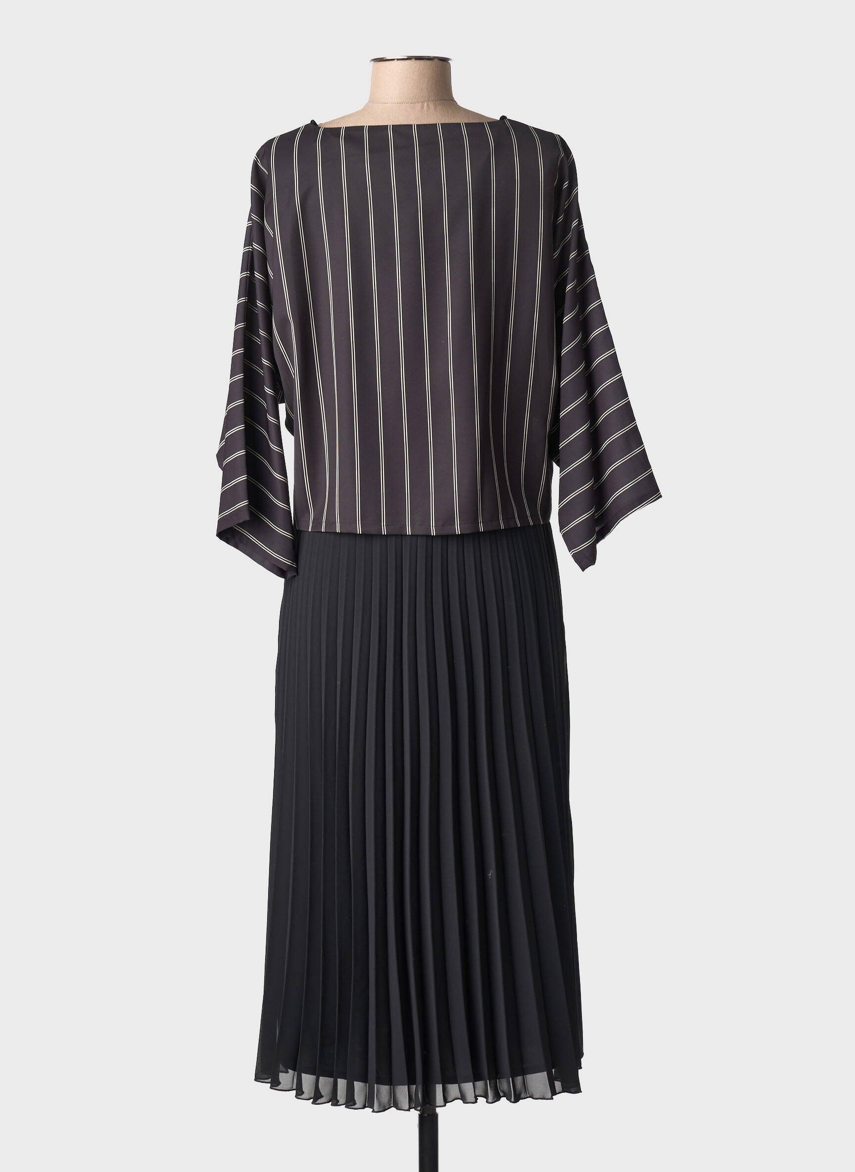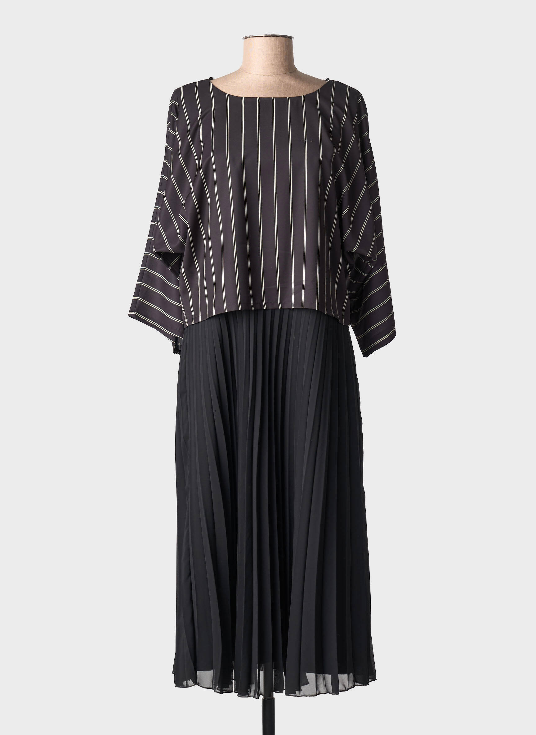 C’est le moment de profiter d’un vrai bon plan avec cette robe longue GUY DUBOUIS pour femme, une belle pièce à prix mini qui mélange élégance et originalité. Son haut à manches longues légèrement amples affiche un motif de fines rayures verticales qui allonge la silhouette, tandis que la jupe plissée noire apporte une touche de légèreté et de mouvement. Cette robe s’adresse à celles qui cherchent un look chic sans se ruiner, parfait pour toutes les occasions où vous voulez marquer les esprits tout en maîtrisant votre budget.