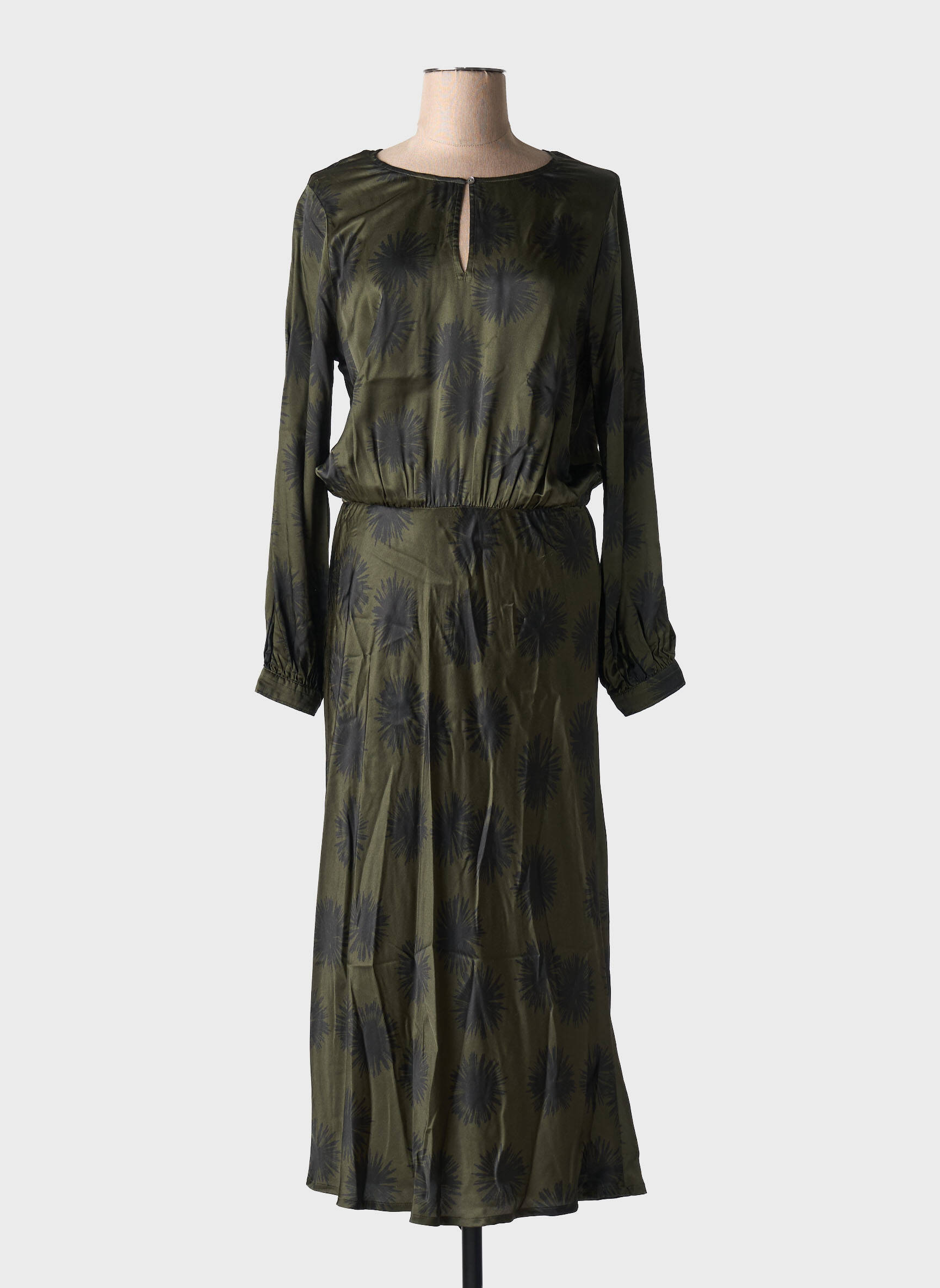 Optez pour une allure chic à prix doux avec cette robe longue signée HARTFORD, parfaite pour profiter des meilleures affaires. Son élégante teinte kaki rehaussée de motifs subtils et sa coupe fluide apportent une touche de modernité tout en restant très confortable à porter, idéale pour celles qui recherchent une pièce tendance sans se ruiner.
