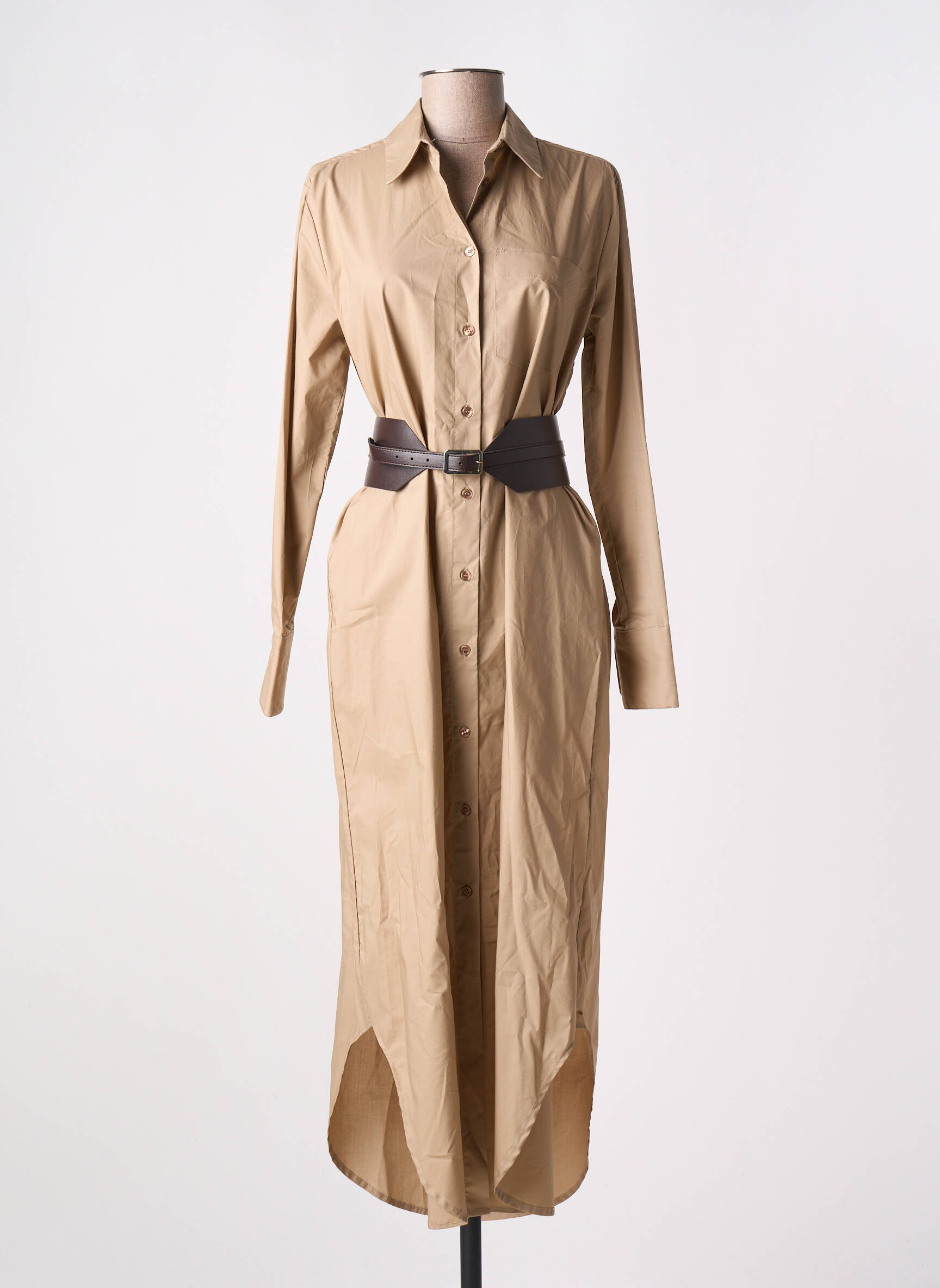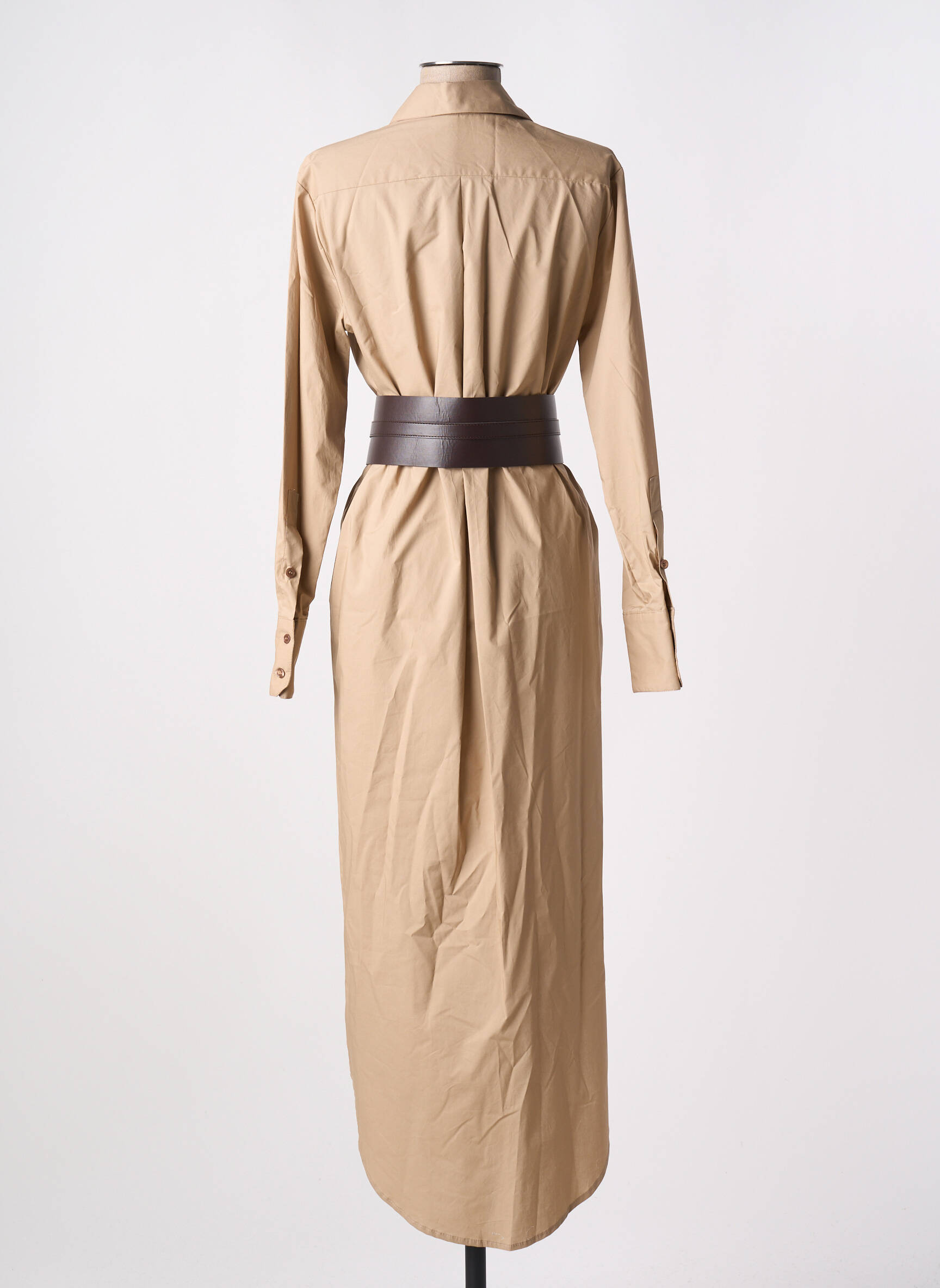 Imaginez une journée ensoleillée où style et confort se rencontrent ; cette robe longue de la marque IMPERIAL pour femme incarne parfaitement cet équilibre. Sa coupe fluide et légèrement évasée descend gracieusement jusqu'aux chevilles, tandis que son ton beige offre une douceur subtile et polyvalente. Les boutons à l'avant ajoutent une touche d'élégance décontractée, tandis que la ceinture en cuir, délicatement placée à la taille, souligne la silhouette avec finesse. Les manches longues et le col classique apportent une sophistication intemporelle, rendant cette robe idéale tant pour une sortie urbaine que pour une occasion spéciale. Cette pièce est un incontournable qui saura habiller toutes vos envies de mode.