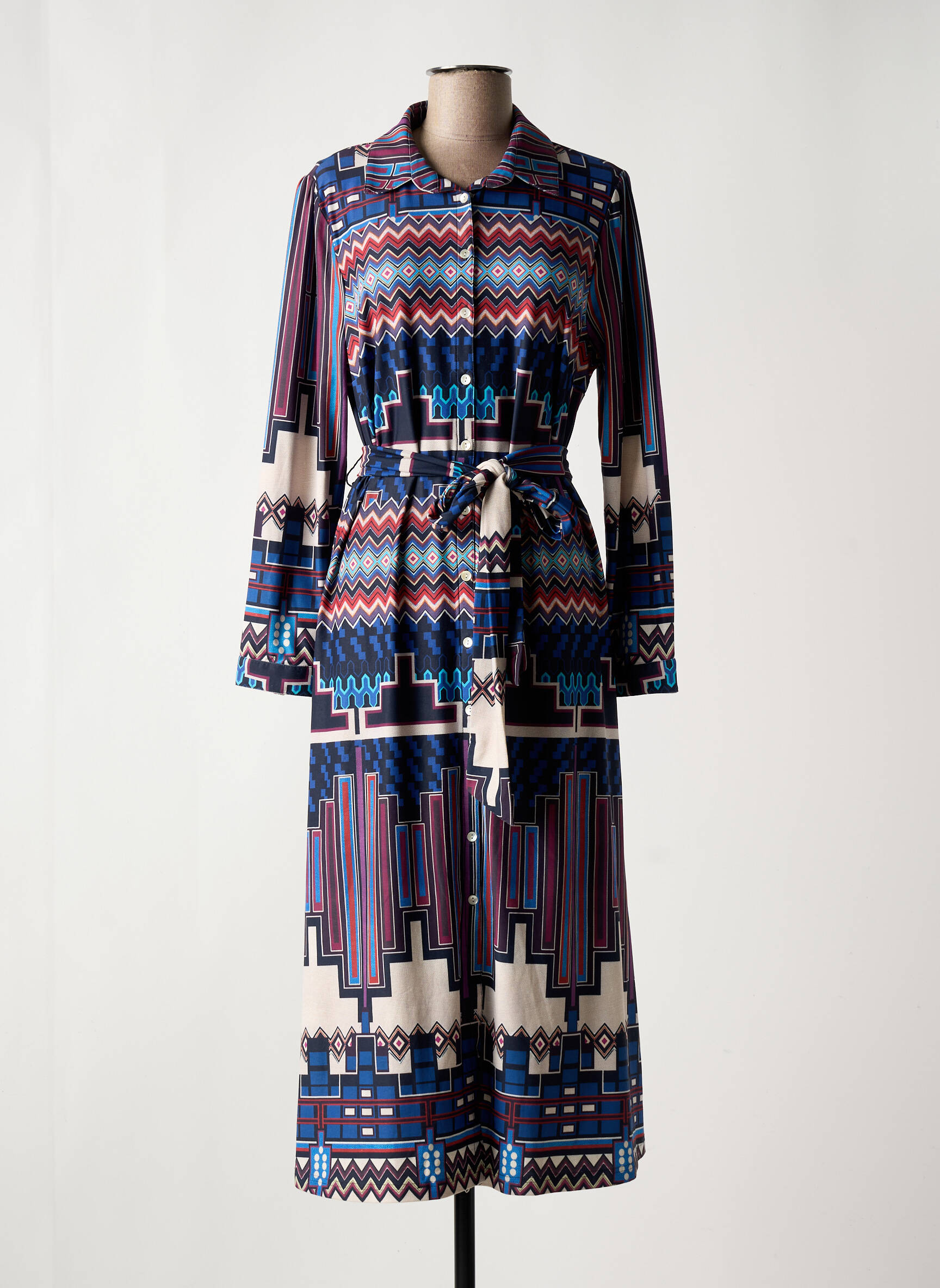 Profitez d'une belle opportunité mode avec cette robe longue K-DESIGN pour femme, affichant un imprimé graphique multicolore qui attire tous les regards et une coupe fluide idéale pour allier confort et élégance au quotidien. Son col chemise, ses manches longues et sa ceinture assortie soulignent la silhouette tout en offrant une allure tendance à petit prix, parfaite pour se faire plaisir sans se ruiner.