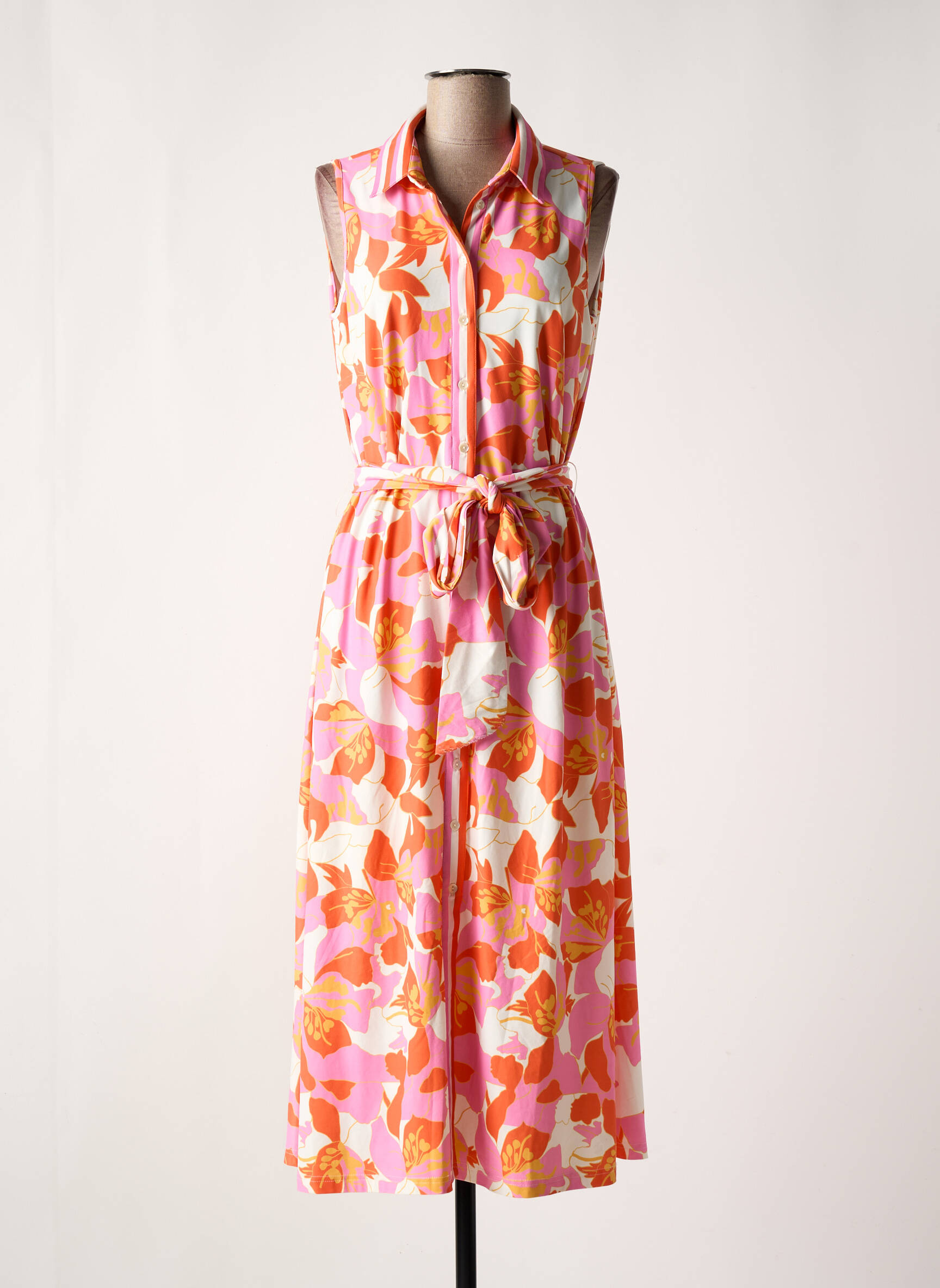 Profitez d'une vraie affaire mode avec cette robe longue K-DESIGN pour femme, parfaite pour celles qui aiment allier style et petit prix. Son imprimé coloré aux nuances de rose et d'orange s'impose tout en douceur, tandis que sa coupe fluide sans manches et sa ceinture fine à nouer marquent délicatement la taille pour une silhouette élégante en toute simplicité. Cette robe est idéale pour donner du peps à votre garde-robe sans vous ruiner.