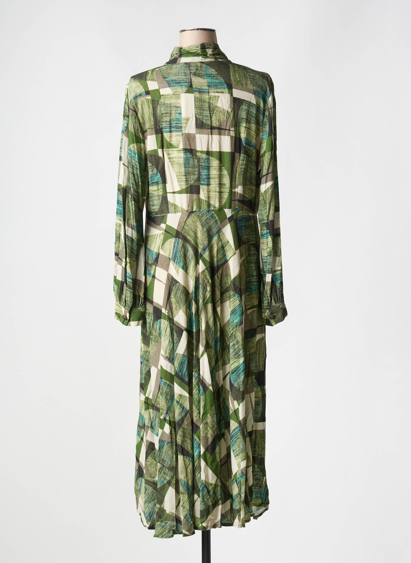 Profitez d’un look tendance à petit prix avec cette superbe robe longue LA FEE MARABOUTEE pour femme, qui séduit par son imprimé graphique mêlant subtilement les nuances de vert et des touches de bleu pour une allure à la fois chic et moderne. Son col lavallière froncé et sa coupe fluide apportent une élégance naturelle, tandis que les boutons au niveau du buste ajoutent une note sophistiquée. C’est le bon plan parfait pour renouveler votre garde-robe sans vous ruiner, tout en adoptant un style original signé par une marque de référence.