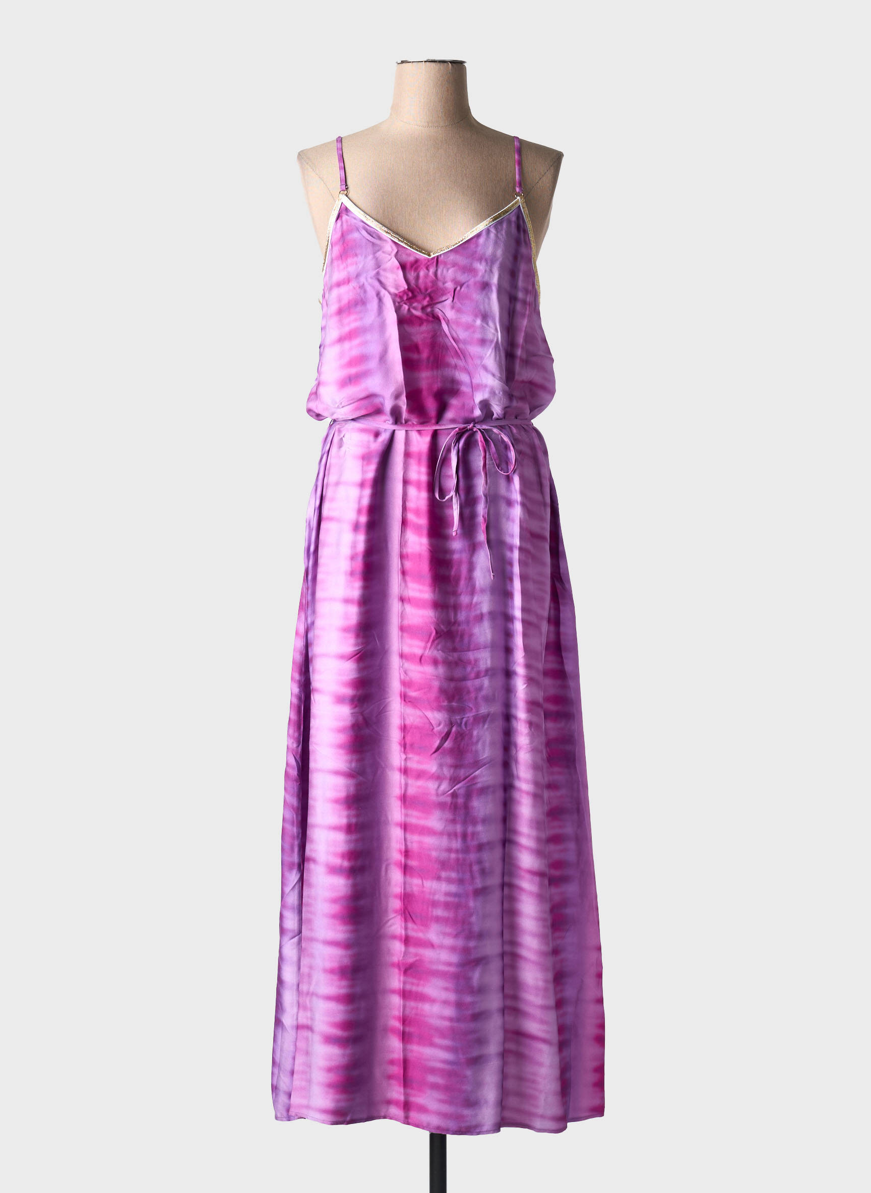 Craquez pour cette robe longue LA NOUVELLE à petit prix, idéale pour apporter une touche de fraîcheur et de modernité à votre garde-robe sans vous ruiner. Sa coupe fluide et légère vous assure un confort optimal, tandis que son imprimé tie and dye dans les tons rose et violet illumine votre silhouette. Les fines bretelles et le lien à nouer à la taille viennent souligner l’allure féminine et élégante de ce modèle à prix doux, parfait pour faire des économies tout en restant tendance.