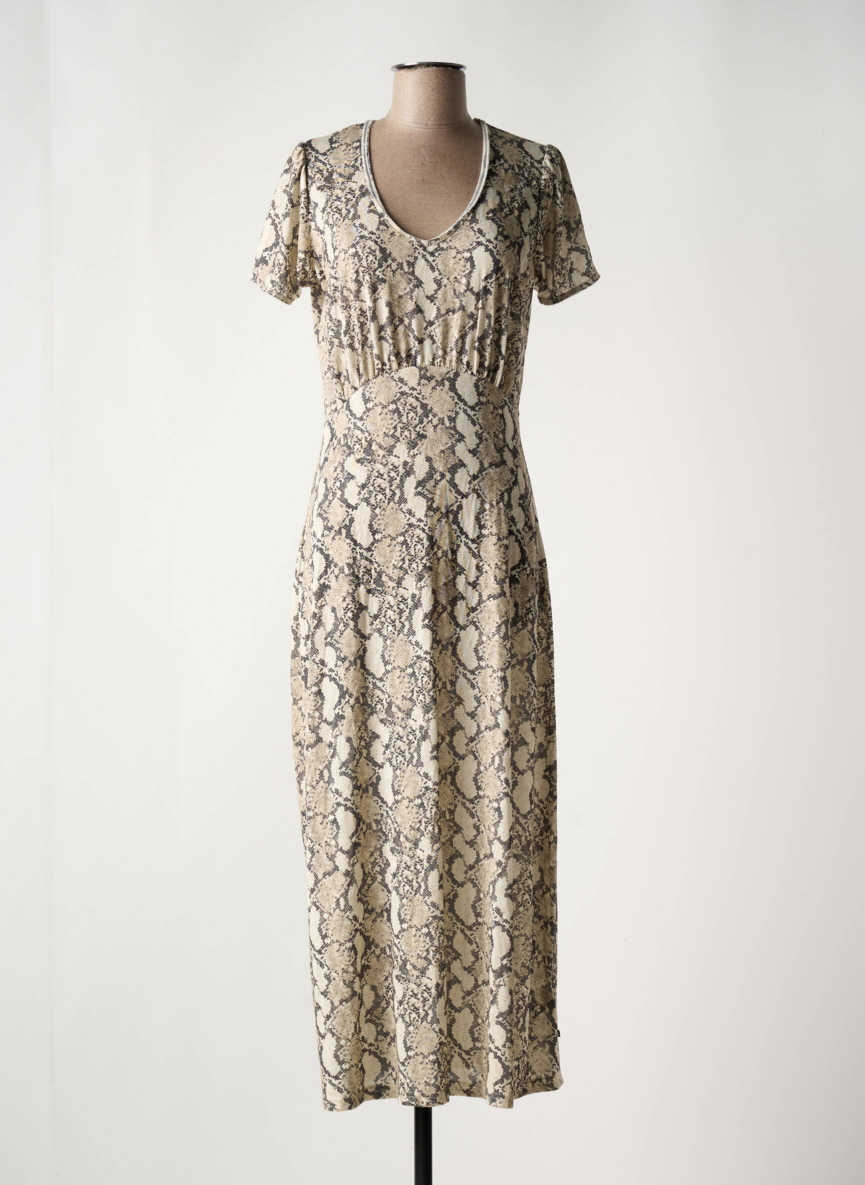 Saisissez l’occasion de vous offrir une robe longue LE TEMPS DES CERISES à prix mini et faites sensation en toute simplicité. Cette robe affiche une élégance naturelle avec son imprimé serpent dans des tons doux, sa coupe cintrée met en valeur la silhouette tandis que son col en V et ses manches courtes apportent une touche féminine et moderne. C’est le bon plan parfait pour renouveler votre dressing sans vous ruiner, tout en profitant du style tendance d’une grande marque.