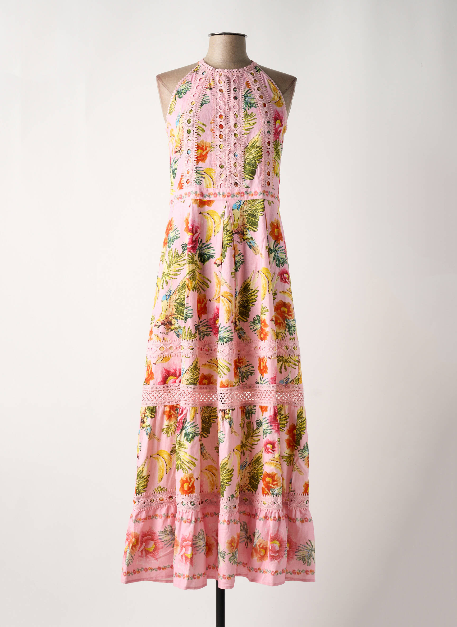 Craquez pour cette superbe robe longue LEO & UGO à prix mini, parfaite pour apporter une touche d’élégance et de fraîcheur à votre garde-robe sans vous ruiner. Son tissu fluide rose délicatement orné de motifs floraux colorés et de détails ajourés lui donne un style bohème et raffiné, idéal pour sublimer vos journées d’été ou voyager en toute légèreté. Profitez d’un look tendance à petit prix, une opportunité à ne pas manquer pour une robe élégante et originale qui attire tous les regards.