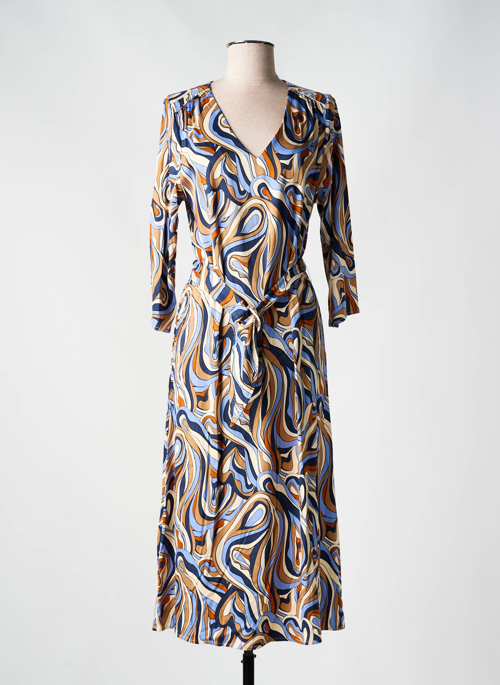 Craquez pour cette robe longue LOLA ESPELETA à petit prix et ajoutez une touche de style à votre garde-robe sans vous ruiner. Avec son effet portefeuille et son imprimé graphique aux nuances de bleu, camel et orange, cette robe offre une silhouette élégante et actuelle, parfaite pour toutes les occasions. Profitez d'un bon plan mode et faites-vous plaisir avec une pièce tendance signée par une marque de qualité à prix déstocké.