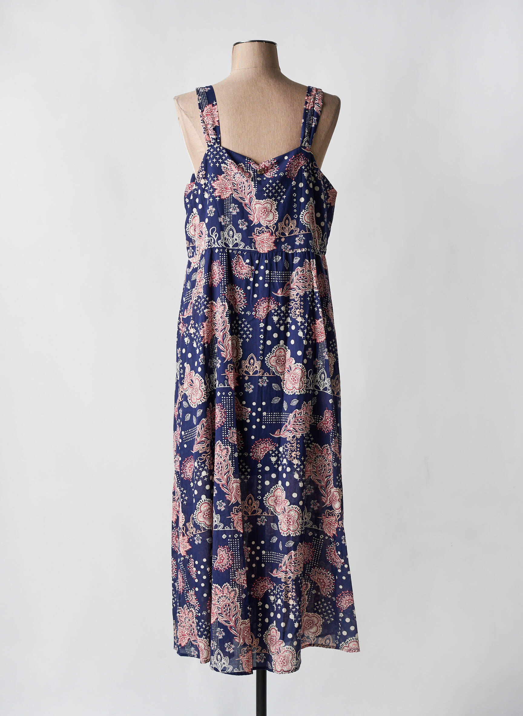 Profitez d’un vrai bon plan avec cette robe longue signée LOLA ESPELETA, idéale pour sublimer votre garde-robe à prix mini. Son tissu fluide et léger laisse deviner une allure élégante et décontractée, tandis que l’imprimé floral coloré sur fond bleu apporte une touche de fraîcheur et de féminité à votre silhouette. Parfaite pour les beaux jours ou vos soirées d’été, cette pièce tendance est une opportunité à saisir pour allier style et économies.