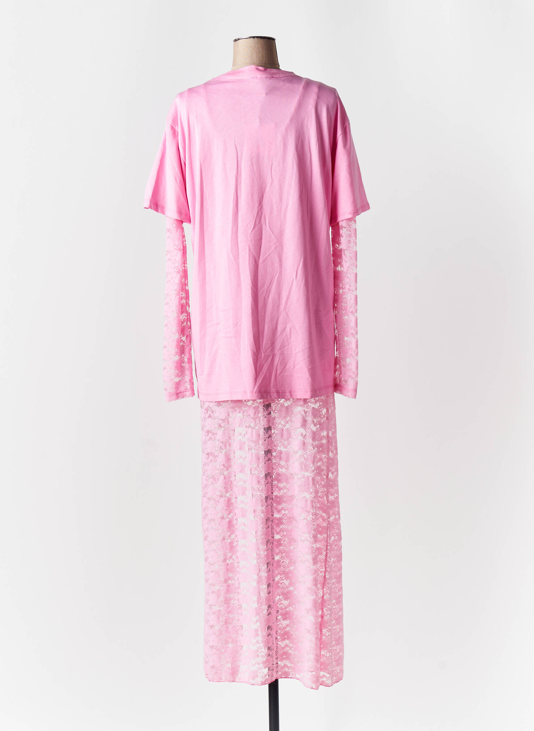 Offrez-vous un look tendance à prix mini avec cette robe longue LUMINA pour femme, confectionnée dans un délicat rose pastel, qui combine une coupe tee-shirt oversize et une jupe longue en dentelle transparente pour un effet superposé moderne et original. Profitez d'une allure sophistiquée et décontractée tout en réalisant de belles économies sur cette pièce coup de cœur idéale pour se démarquer sans se ruiner.