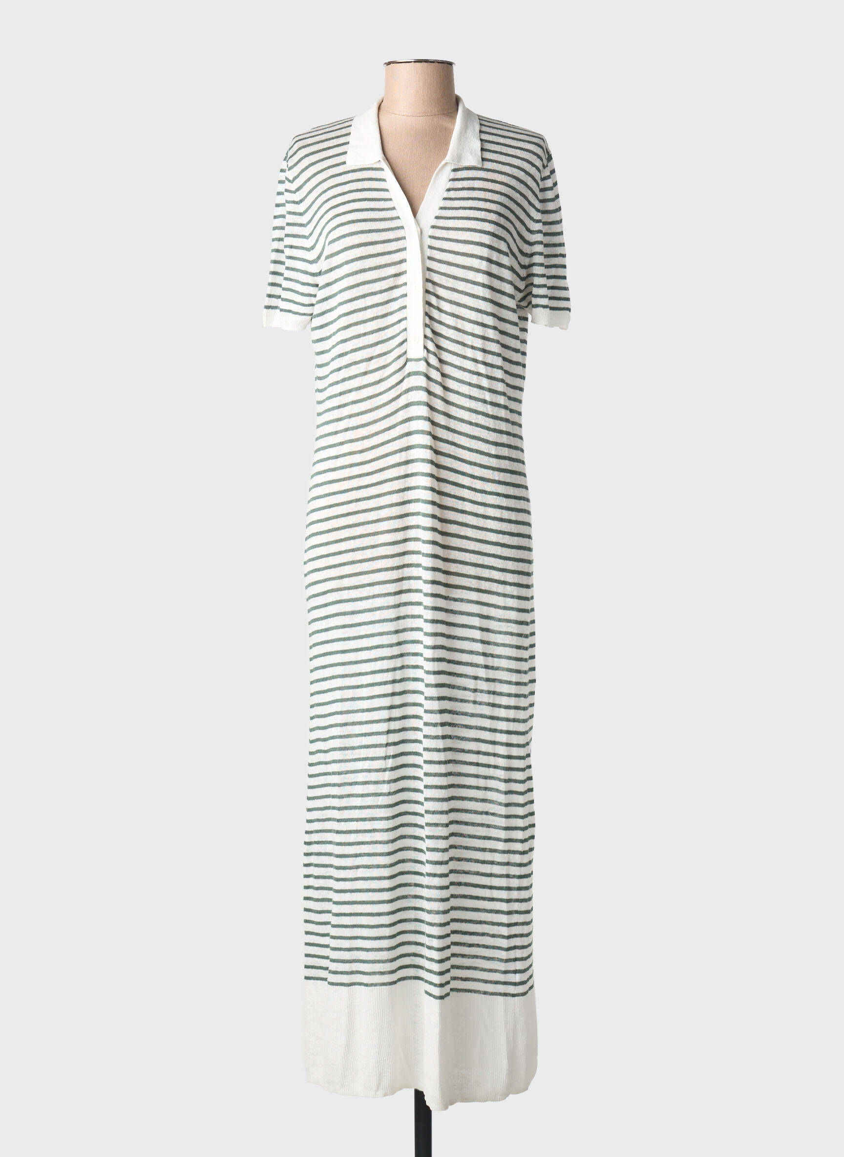 Profitez d’un vrai bon plan avec cette robe longue signée MAJESTIC FILATURES, parfaite pour allier élégance et confort à petit prix. Avec son motif rayé intemporel et sa coupe décontractée, ce modèle à manches courtes offre une allure moderne, facile à porter au quotidien ou lors de vos escapades estivales. Son col polo ajoute une touche d’originalité tandis que la fluidité de la robe garantit un tombé flatteur. Succombez à cette pièce qui revisite le style casual-chic sans compromis sur le portefeuille.