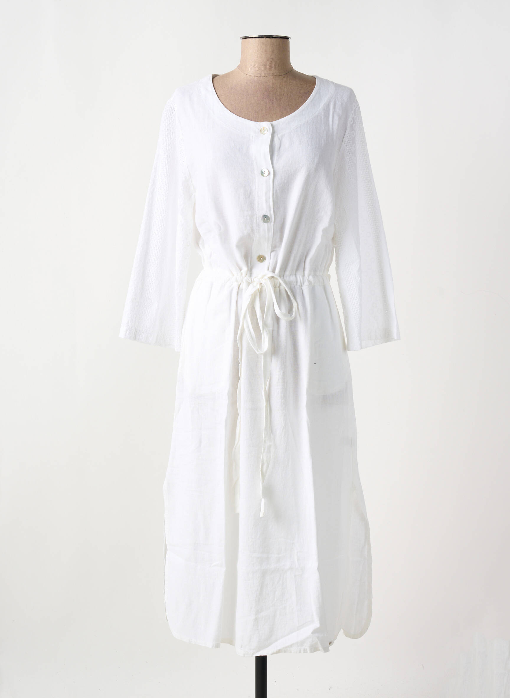 Craquez pour cette superbe robe longue MALOKA pour femme, une pièce à prix mini idéale pour renouveler votre garde-robe sans vous ruiner. Ses lignes épurées et son coloris blanc éclatant apportent une touche de fraîcheur et d’élégance, tandis que la taille ajustée par un lien vous assure un confort tout au long de la journée. Boutonnée sur le devant, elle offre un style décontracté parfait pour les beaux jours et s’adapte à toutes vos envies, de la plage aux balades en ville, le tout à prix malin.