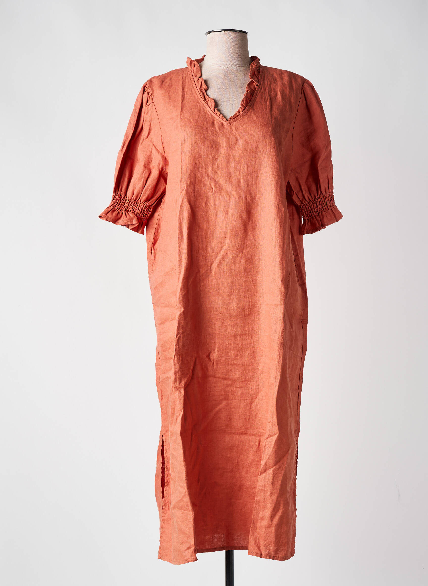 Profitez d’une offre exceptionnelle avec cette robe longue MASAI pour femme, idéale pour allier élégance et petit prix. Sa couleur terracotta apporte une touche lumineuse et moderne à votre garde-robe, tandis que sa coupe fluide garantit un confort optimal toute la journée. Le col en V délicatement orné de volants et les manches mi-longues smockées ajoutent une note féminine très tendance. C’est la robe parfaite à shopper à prix doux pour sublimer vos looks sans vous ruiner.