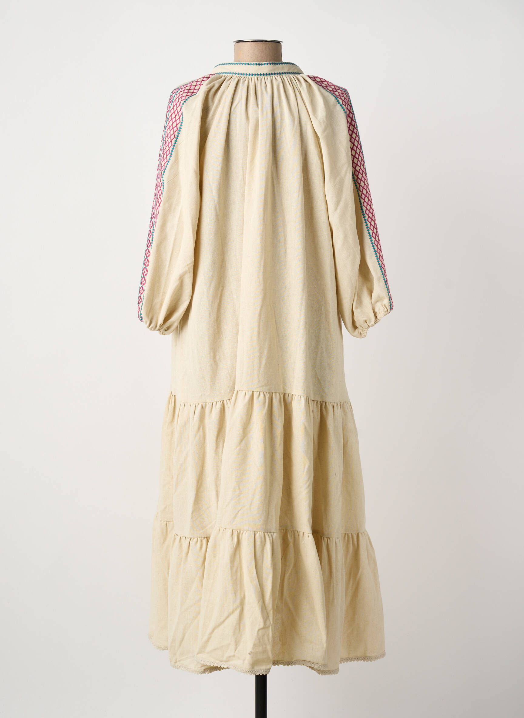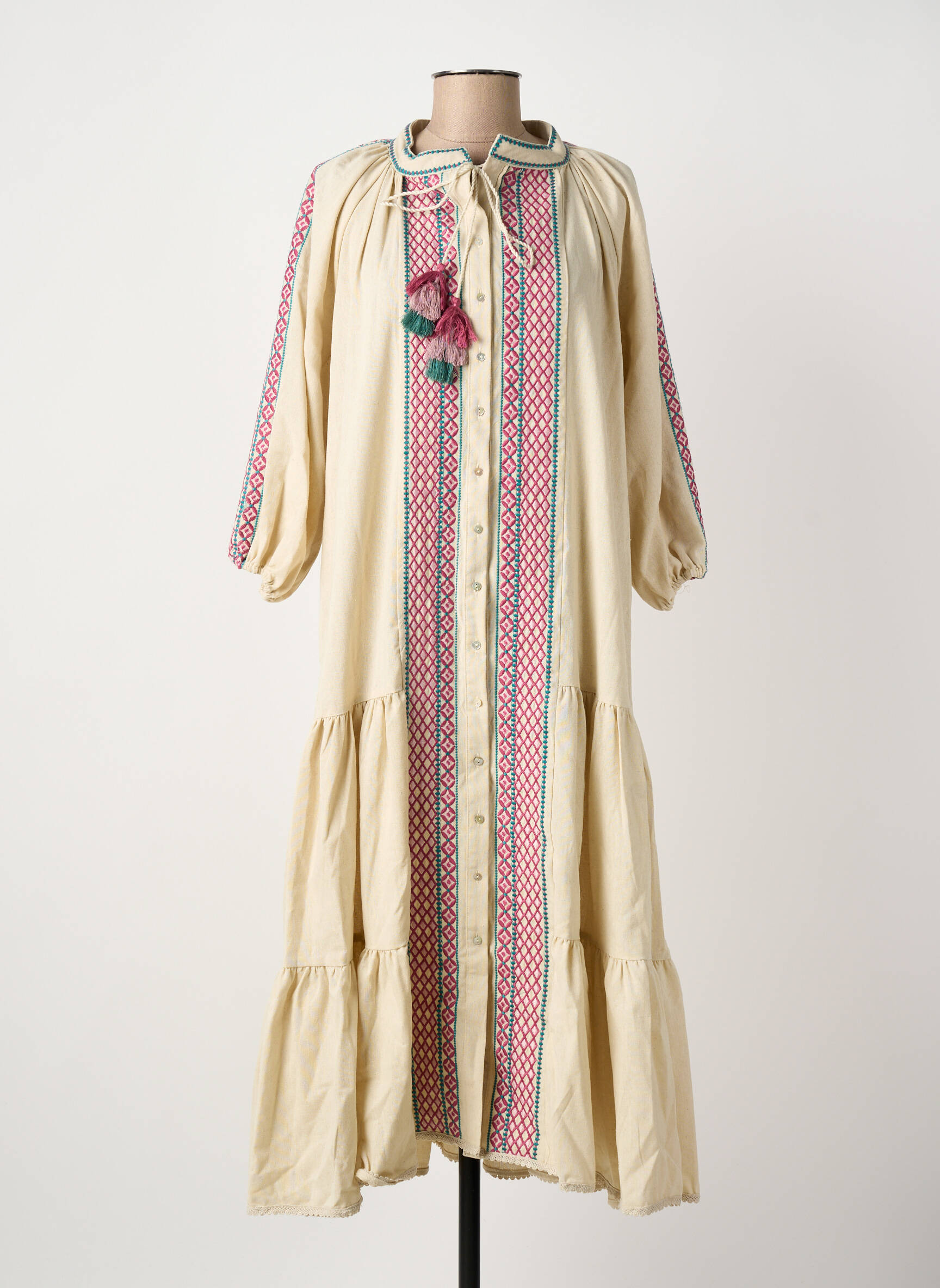Craquez pour cette robe longue de la marque MEISÏE au style bohème, un vrai bon plan pour donner du caractère à votre dressing sans vous ruiner. Sa coupe ample et fluide assure un confort absolu, tandis que ses broderies colorées et ses détails à pompons sur l’encolure apportent une touche artisanale et élégante. Avec ses manches longues légèrement bouffantes et sa patte de boutonnage sur toute la longueur, c’est la pièce parfaite pour celles qui recherchent une robe originale à prix doux, idéale pour les beaux jours ou les soirées d’été.