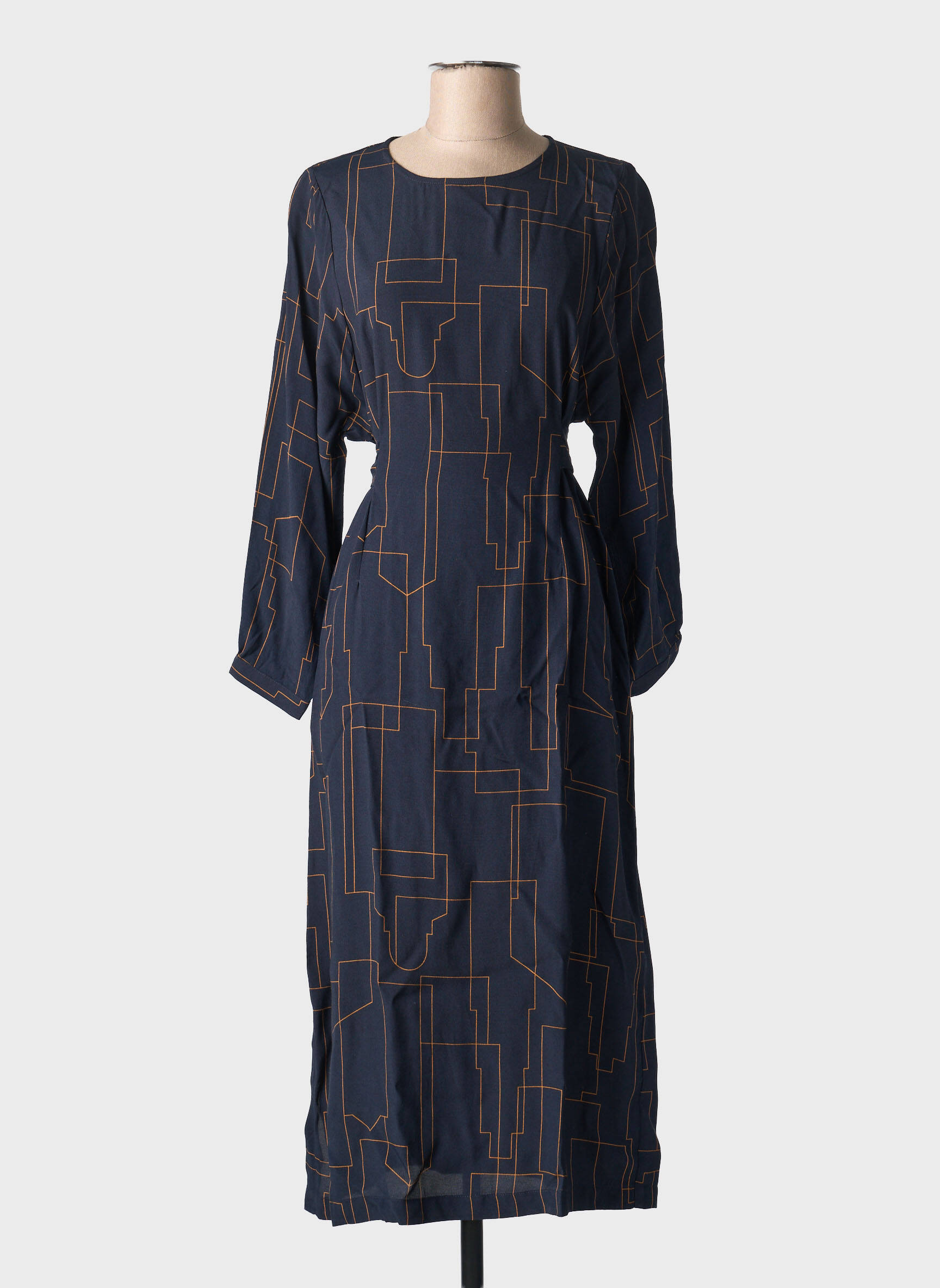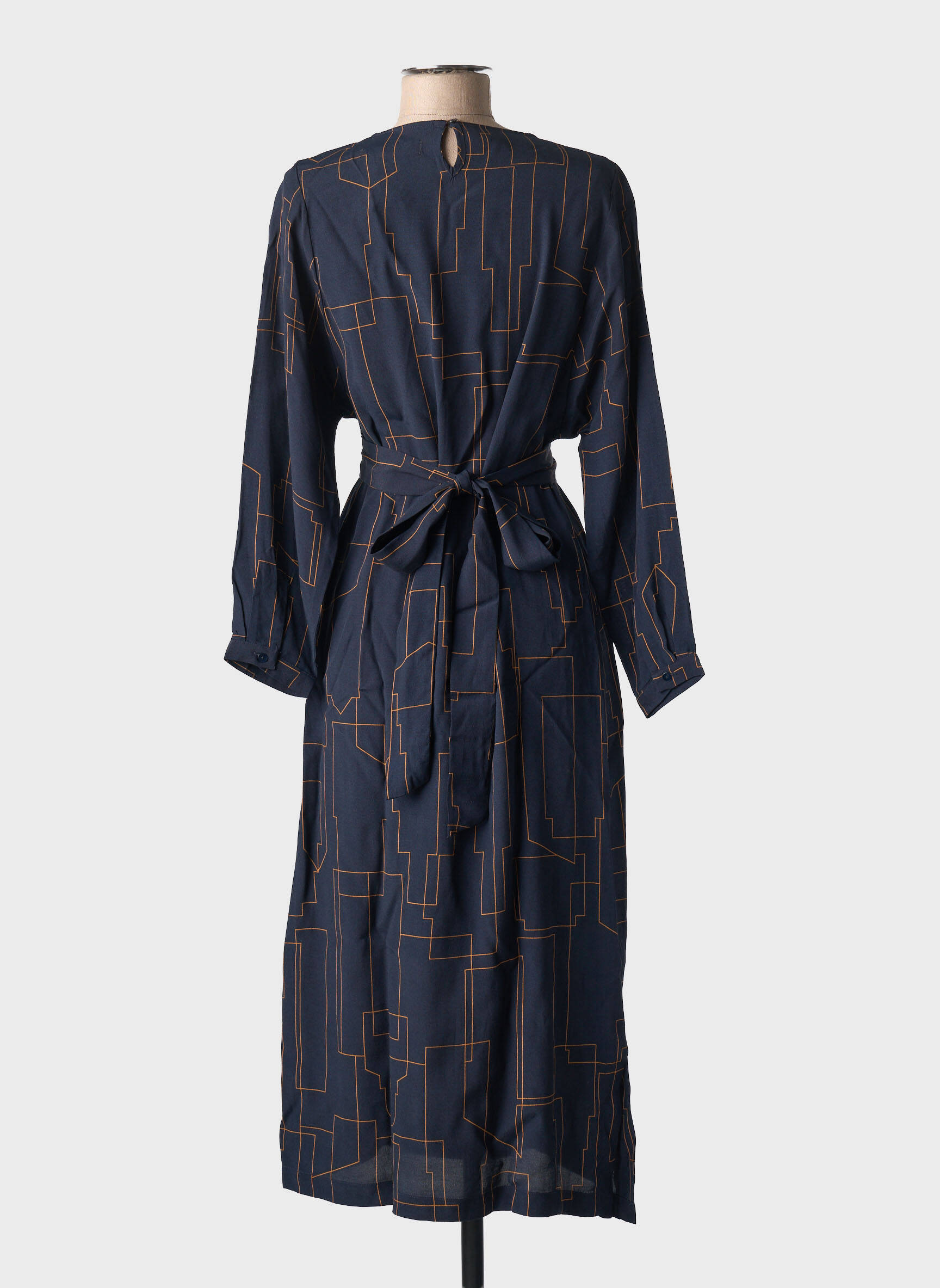 Craquez pour cette robe longue de la marque NICE THINGS, une pièce élégante et moderne à prix malin, parfaite pour ajouter une touche graphique à votre dressing sans vous ruiner. Avec sa coupe fluide et son motif géométrique raffiné sur fond bleu nuit, elle vous assure un look tendance aussi bien au quotidien que pour des occasions spéciales, sans compromis sur l’économie.
