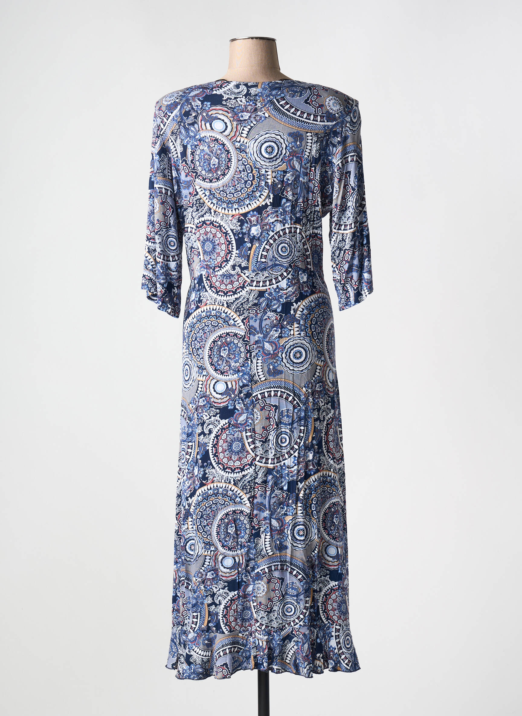Craquez pour cette robe longue OLIVER JUNG à prix tout doux, idéale pour allier élégance et originalité grâce à son imprimé bleu à motifs graphiques. Sa coupe fluide souligne la silhouette en douceur, tandis que l'encolure en V et les manches trois-quarts apportent une touche féminine, parfaite pour mettre du style dans votre dressing sans vous ruiner.