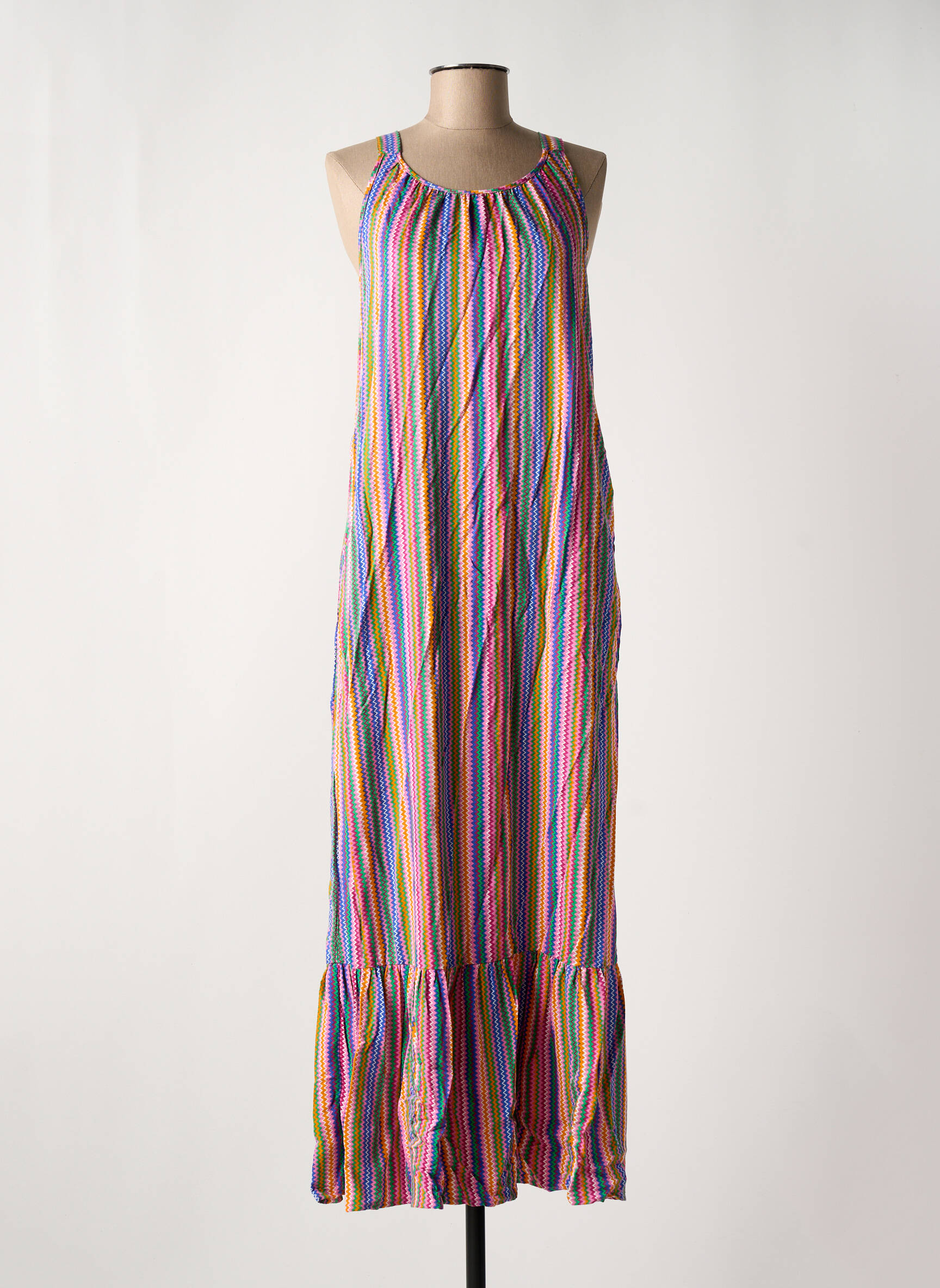 Craquez pour cette robe longue ONLY à prix mini, idéale pour égayer votre dressing sans vous ruiner. Sa coupe décontractée met en valeur une silhouette fluide et moderne, tandis que ses fines bretelles et son encolure ronde offrent un confort parfait pour les beaux jours. Les rayures multicolores apportent une touche d’originalité et de fraîcheur, et le volant à la base donne du mouvement pour un look tendance en toute simplicité. Profitez d’un bon plan mode et laissez-vous séduire par ce modèle chic et accessible !