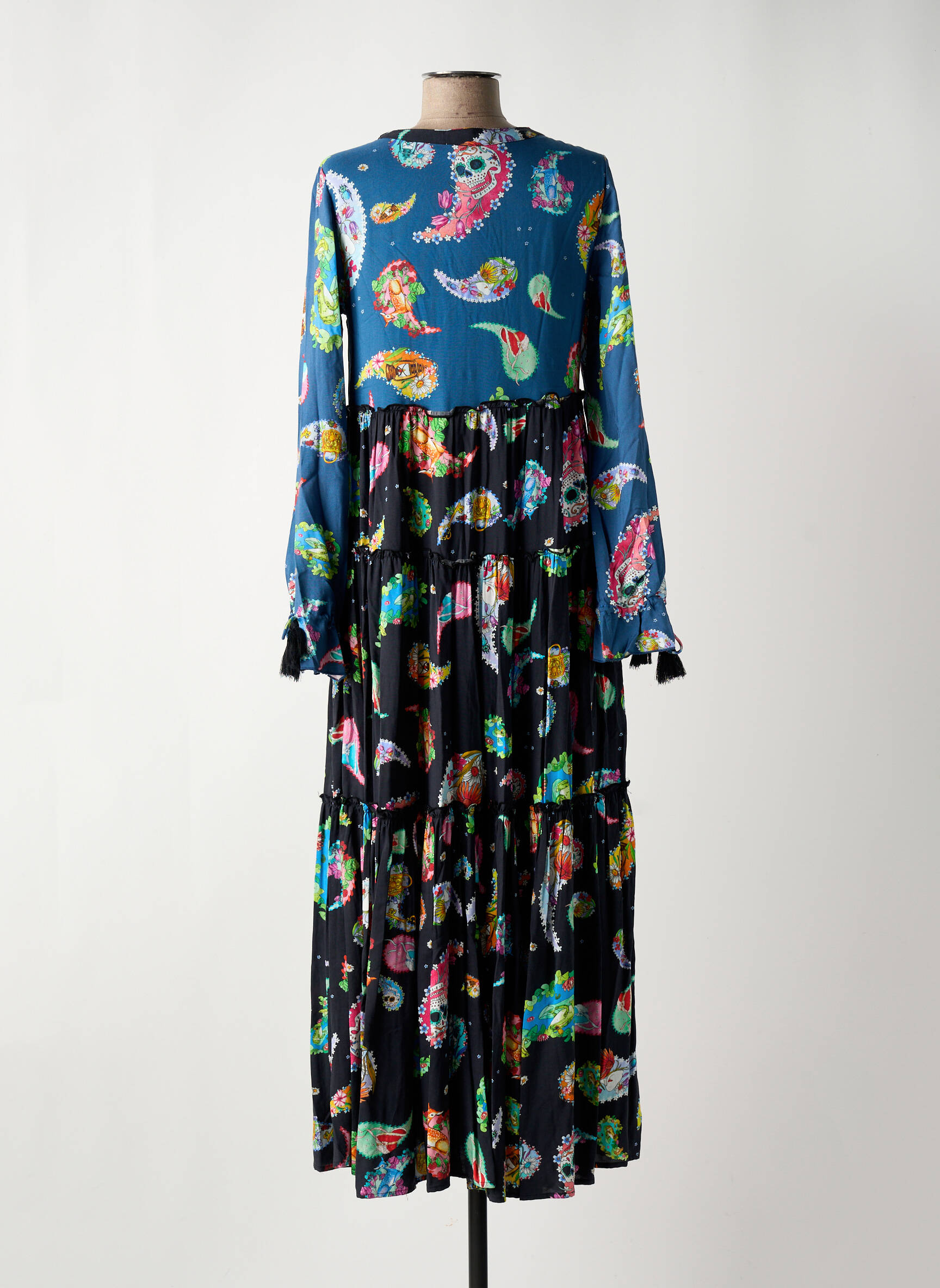 Robe Longue Peace + Love Bleu Manches Longues