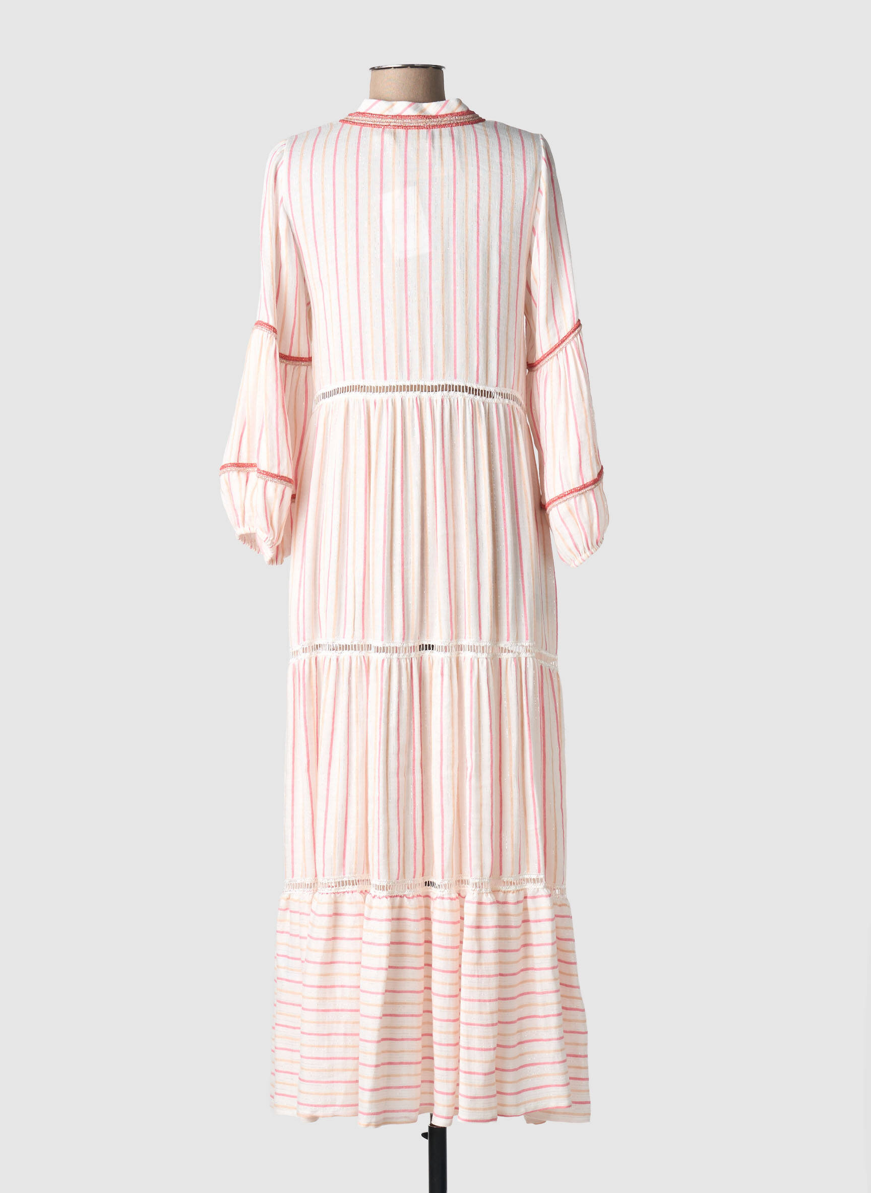 Profitez d’une superbe opportunité pour donner du style à votre dressing sans vous ruiner avec cette robe longue PHO FIRENZE pour femme, au tombé fluide et à l’élégance décontractée grâce à ses rayures délicates dans des tons pastel, ses manches longues légèrement bouffantes et sa coupe boutonnée qui allie confort et tendance pour toutes les occasions.