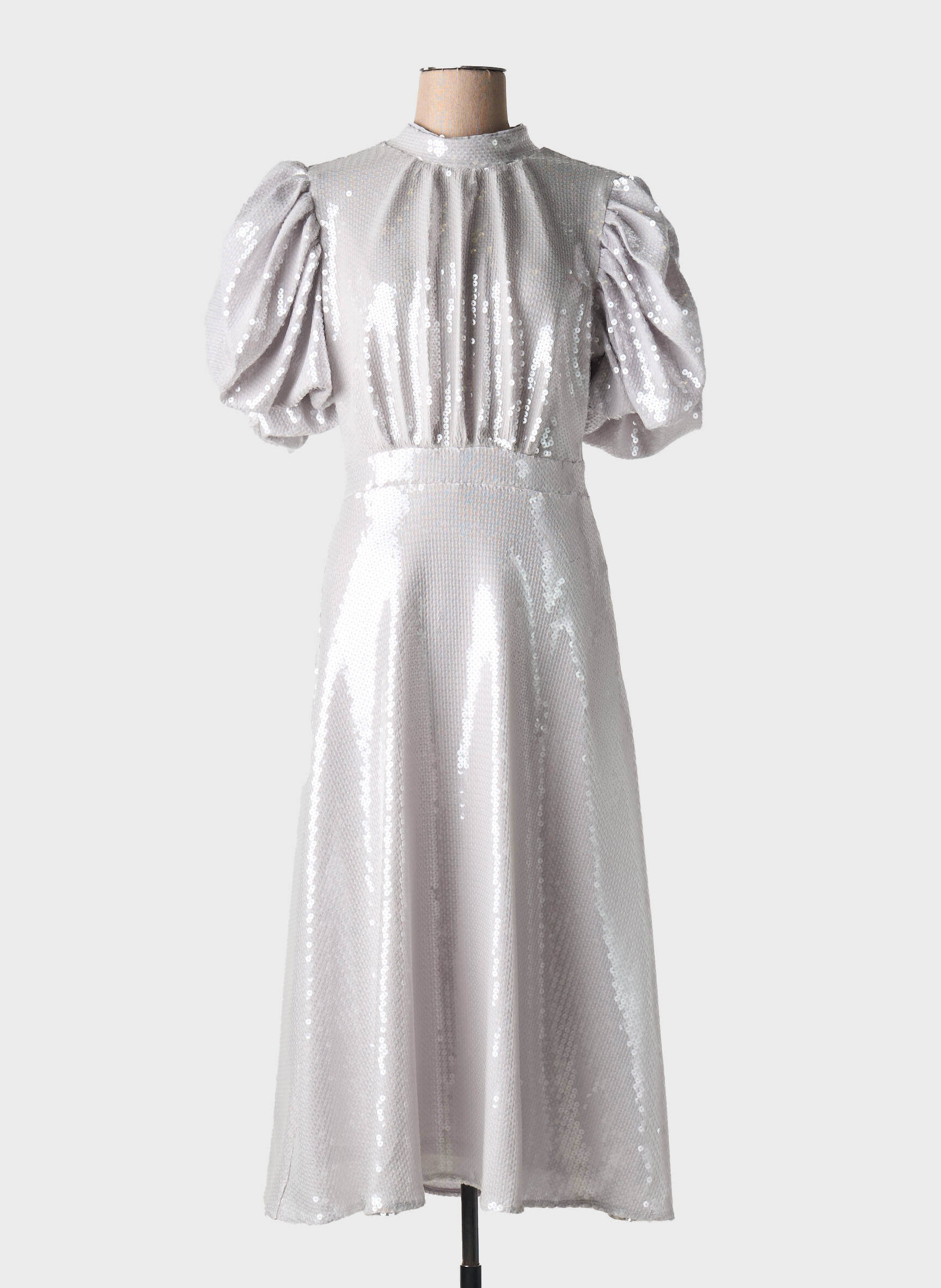 Robe Longue Rotate Argent Manches Courtes