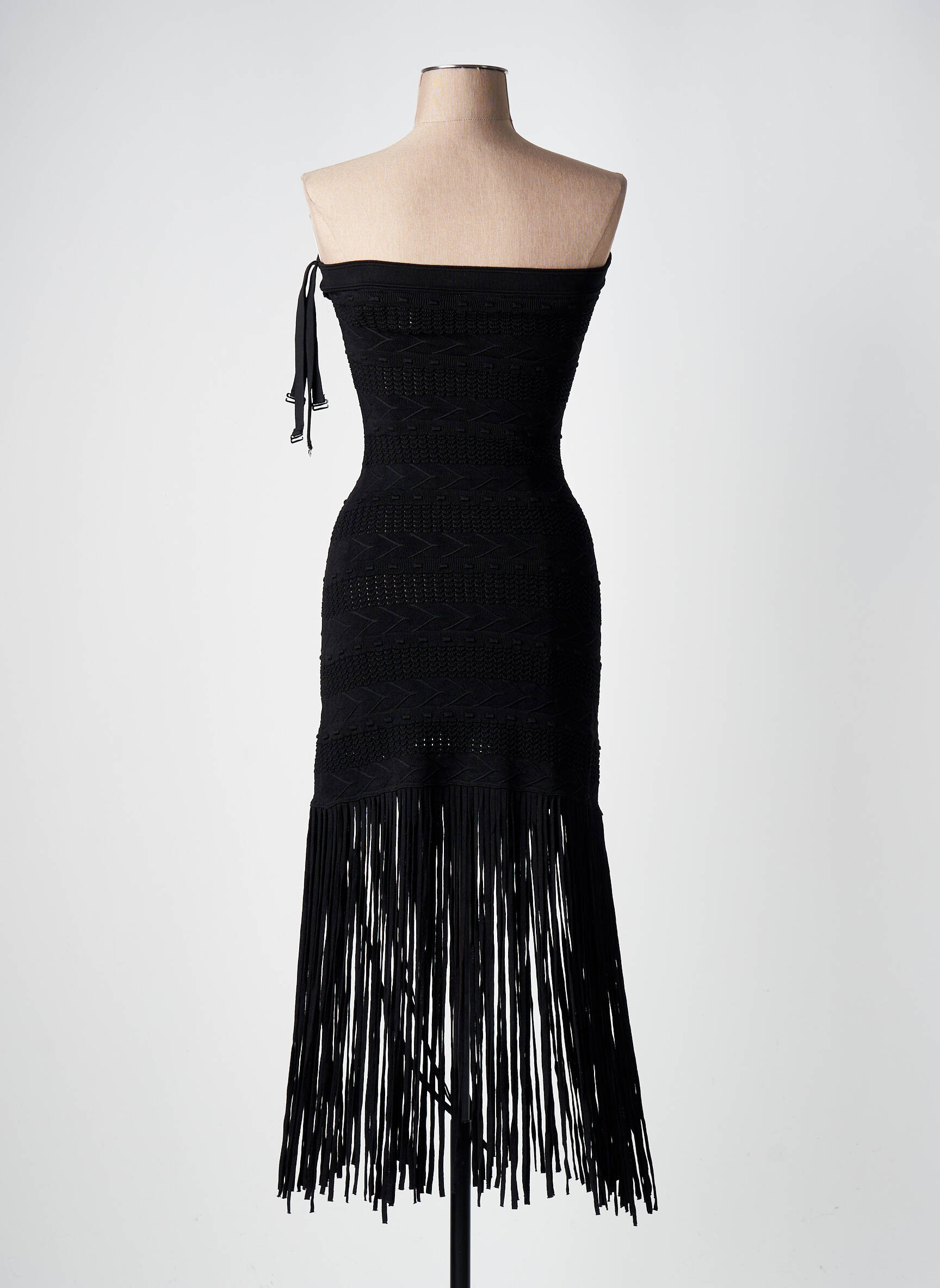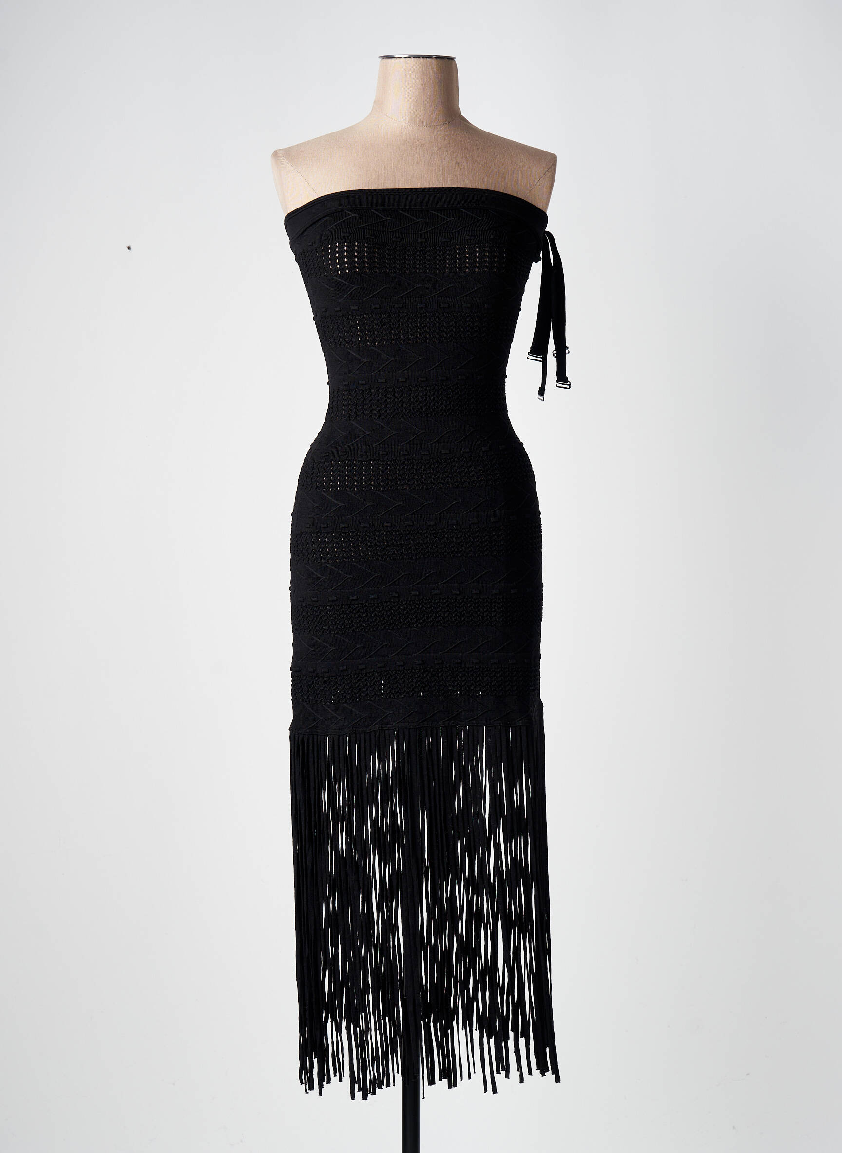 Profitez d'une occasion à ne pas manquer avec cette robe longue signée SANDRO, proposée à prix mini pour sublimer votre garde-robe sans compromis. Son élégante coupe bustier épouse parfaitement la silhouette tandis que le détail de la matière ajourée apporte une touche sophistiquée et moderne. Le jeu de franges sur la partie basse dynamise la tenue pour un effet chic et dansant, idéal pour vos soirées d’exception. Ce modèle minimaliste mais travaillé, à la fois intemporel et original, vous permet de vous offrir un look de créateur raffiné à prix réduit.