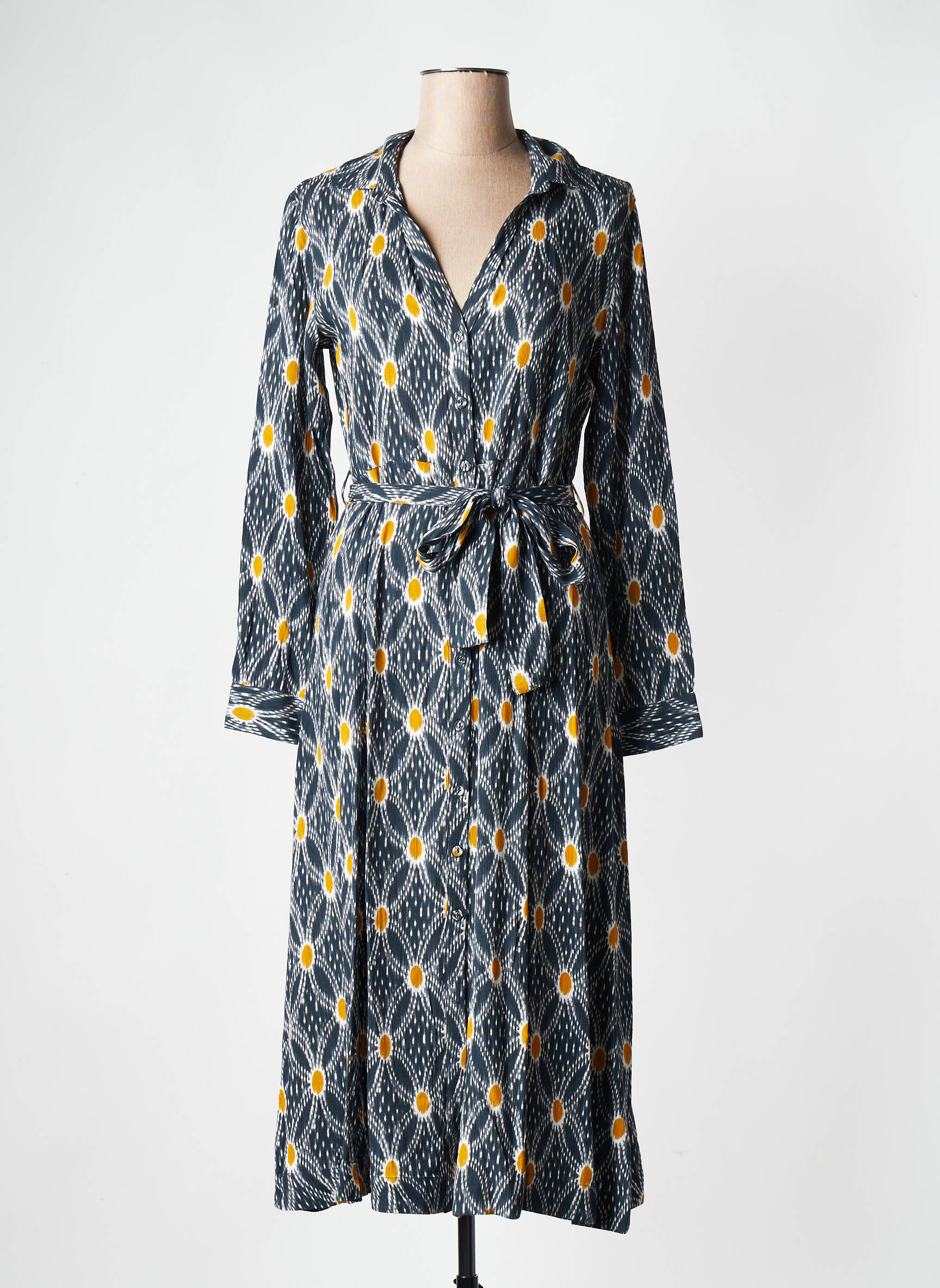 Profitez d’un vrai bon plan avec cette robe longue signée STELLA FOREST, parfaite pour apporter une touche de fraîcheur et d’élégance à votre dressing sans vous ruiner. Son imprimé graphique rehaussé de touches de couleur jaune et orange illumine la silhouette, tandis que la ceinture à nouer marque joliment la taille pour une allure féminine tout en légèreté. C’est la pièce idéale pour celles qui recherchent style et économies sur des articles tendance de grandes marques.