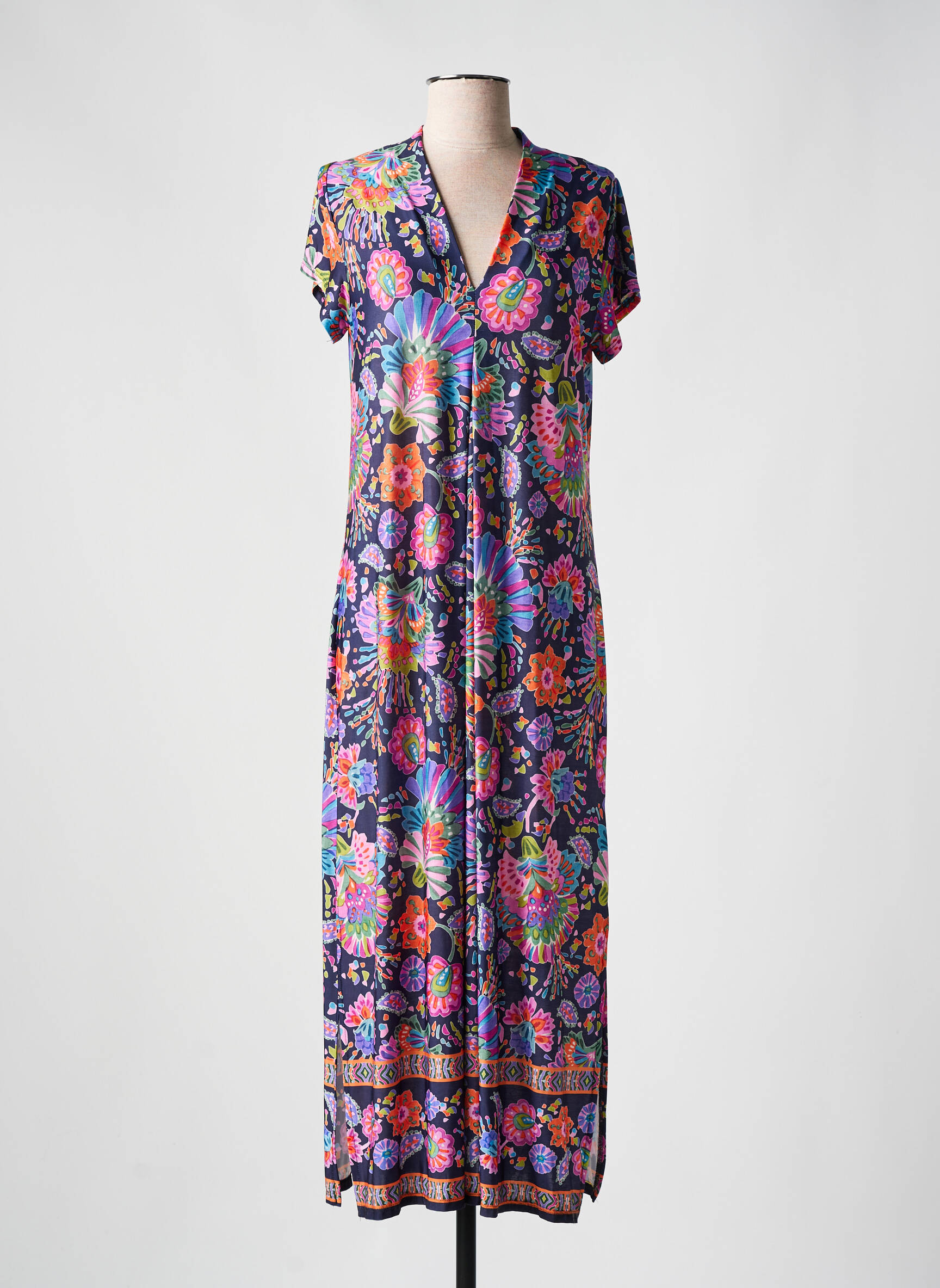 Craquez pour cette robe longue TINTA STYLE pour femme, une vraie trouvaille à prix mini qui séduira toutes celles en quête de bonnes affaires. Avec son imprimé floral éclatant aux couleurs vives et ses manches courtes, elle apporte une touche de fraîcheur et d'originalité à votre dressing tout en restant accessible. Son col en V et sa coupe fluide mettent en valeur la silhouette avec élégance, idéale pour profiter de l’été sans compromis sur le style ni sur votre budget.