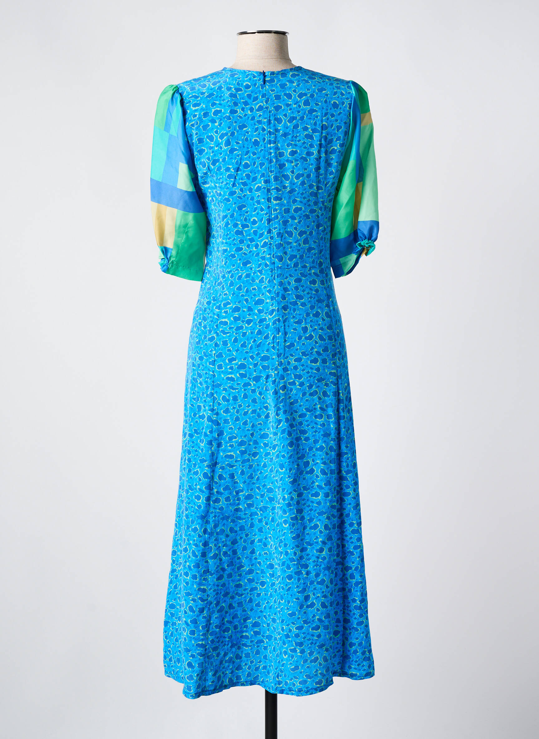Robe Longue Toupy Bleu Manches Courtes