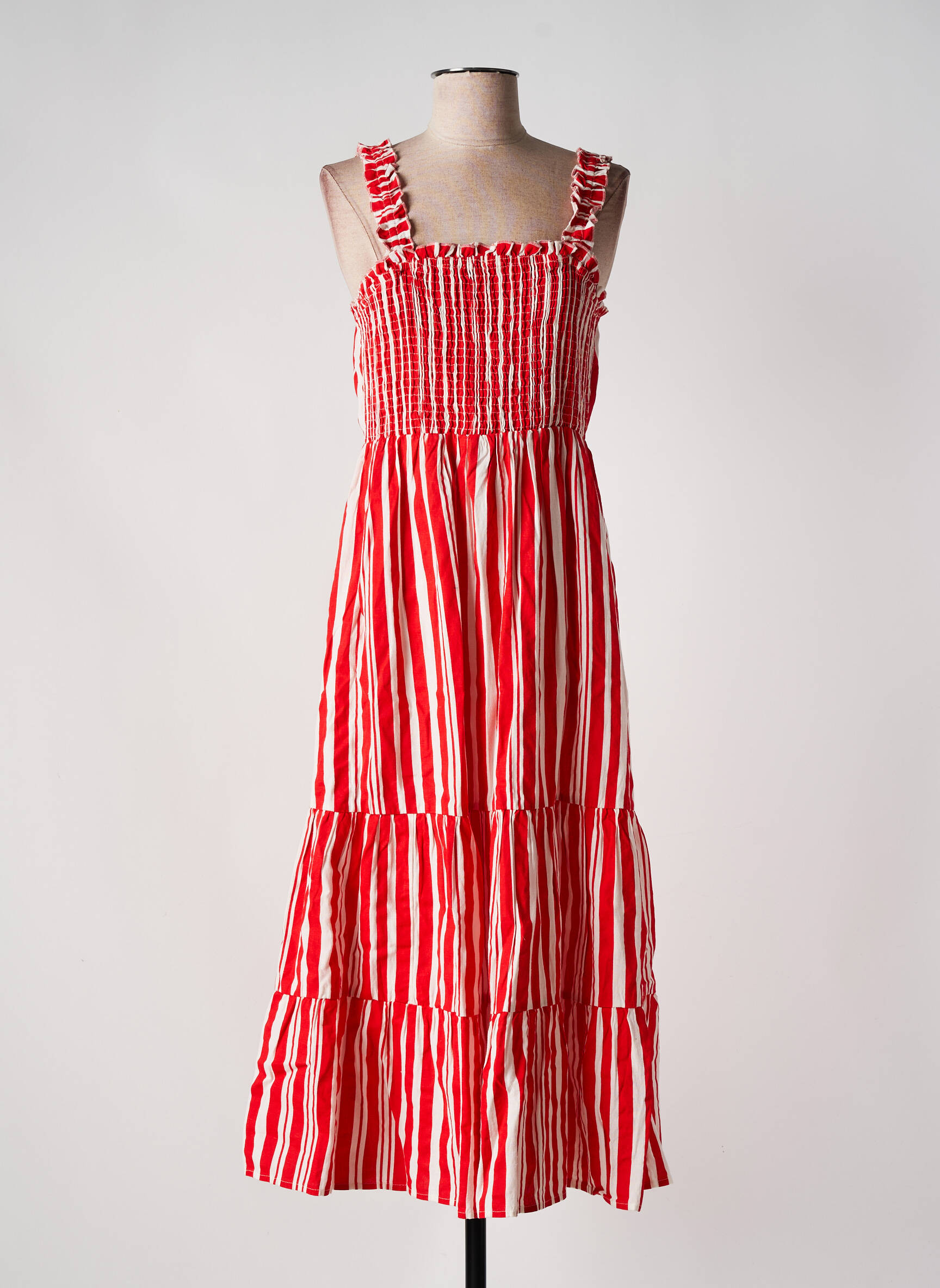 Craquez pour cette robe longue VILA à prix mini et donnez du peps à votre dressing sans vous ruiner. Avec son joli jeu de rayures rouges et blanches qui apporte fraîcheur et originalité, sa coupe fluide et son bustier smocké à larges bretelles volantées, elle allie confort et style pour toutes vos sorties estivales tout en étant une vraie bonne affaire.