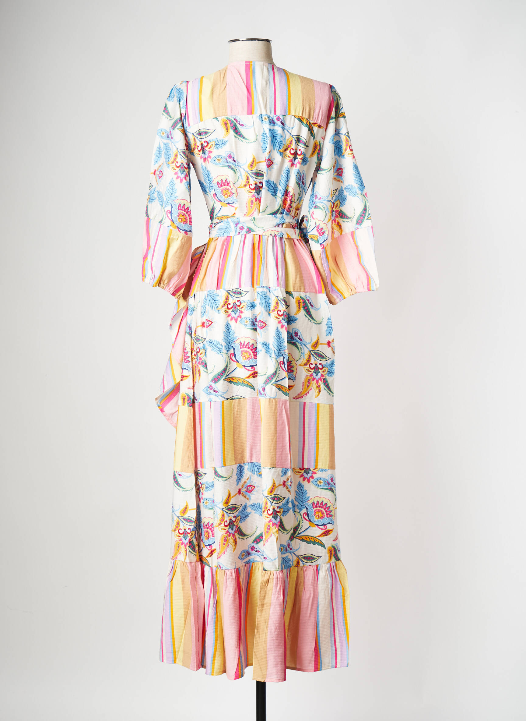 Craquez pour cette robe longue de la marque Y.A.S, un véritable bon plan pour ajouter une touche de gaieté à votre garde-robe sans vous ruiner. Avec son joli mélange d’imprimés floraux et de rayures aux couleurs pastel, cette robe offre une allure romantique et lumineuse, parfaite pour la belle saison. Son décolleté croisé et sa taille marquée dessinent une silhouette féminine tandis que les manches longues légèrement bouffantes apportent une note tendance. À prix déstocké, c’est la pièce idéale pour se faire plaisir et affirmer son style à petit prix.