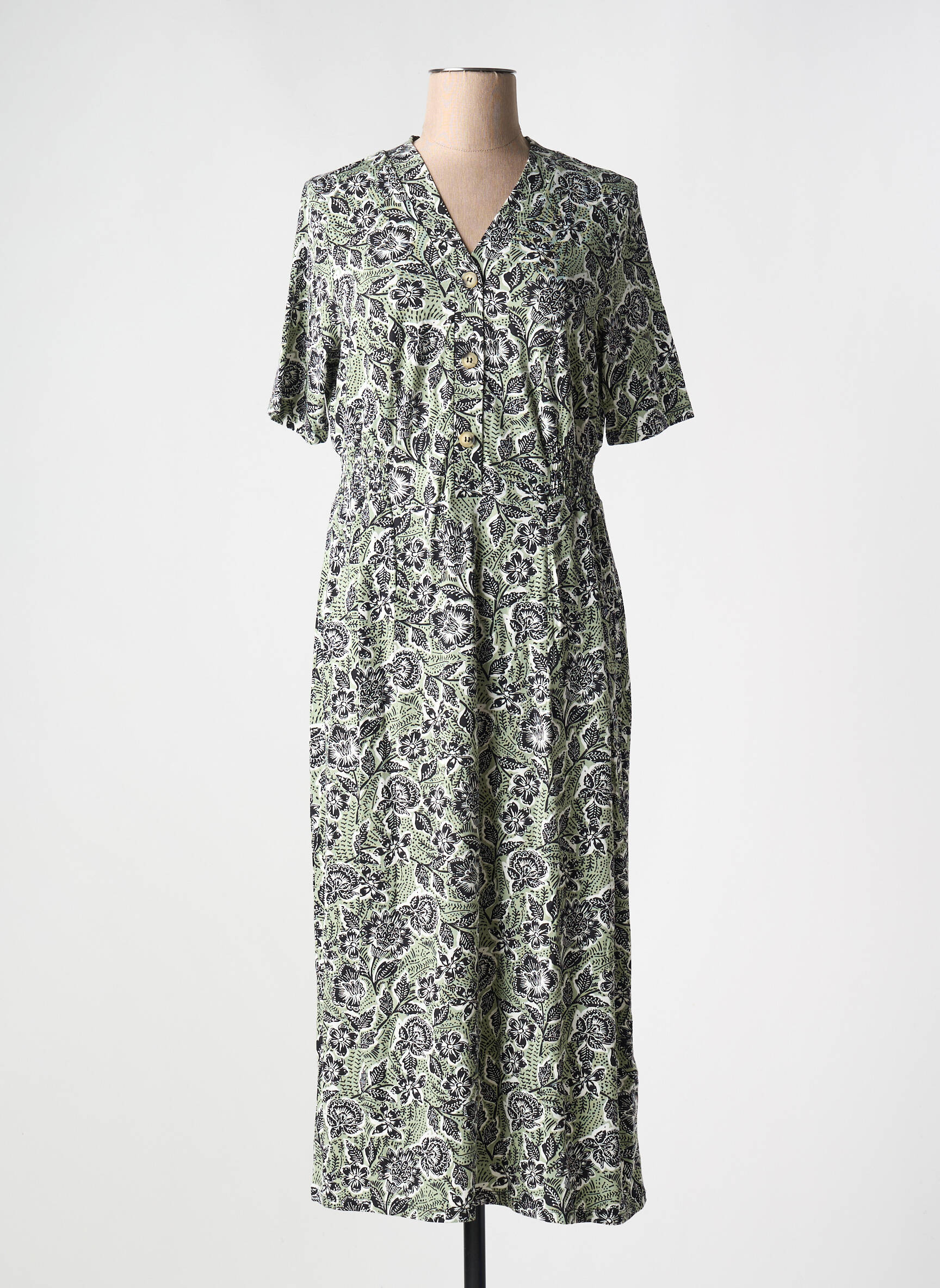Craquez pour cette robe longue de la marque YEST à prix mini, idéale pour donner du style à vos journées sans vous ruiner. Son imprimé délicat mêlant des tons verts et noir ajoute une touche fraîche et moderne, tandis que sa coupe flatteuse, à manches courtes et boutonnage discret sur le devant, garantit un confort parfait pour toutes les occasions. Profitez d’un vrai bon plan mode qui allie élégance, originalité et petit prix, parfait pour renouveler votre garde-robe sans compromis.