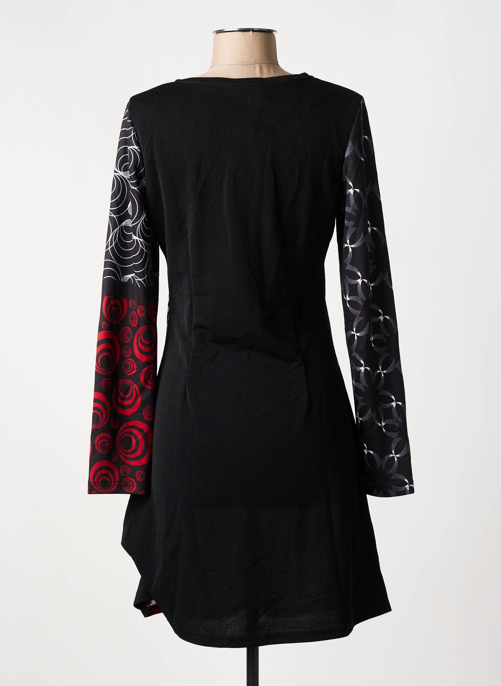 Craquez pour cette robe mi-longue 101 IDEES à prix mini, parfaite pour ajouter une touche graphique et originale à votre dressing sans vous ruiner. Son imprimé hypnotique mêle motifs géométriques noirs, blancs et touches de rouge pour un résultat unique et dynamique, idéal pour affirmer votre style tout en profitant d’une super affaire sur une pièce mode signée.