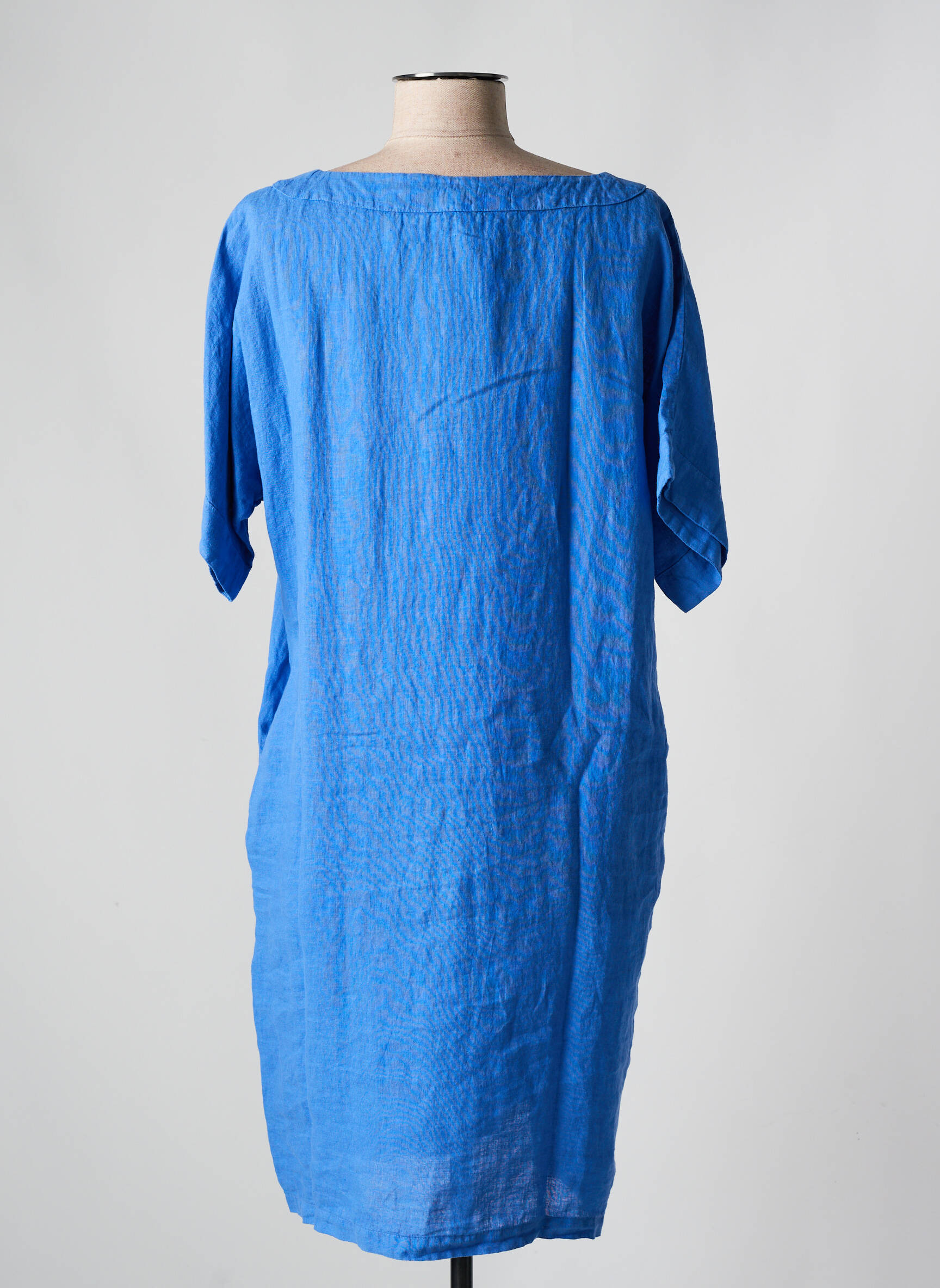 Robe Mi-longue 120% Lino Bleu Manches Courtes