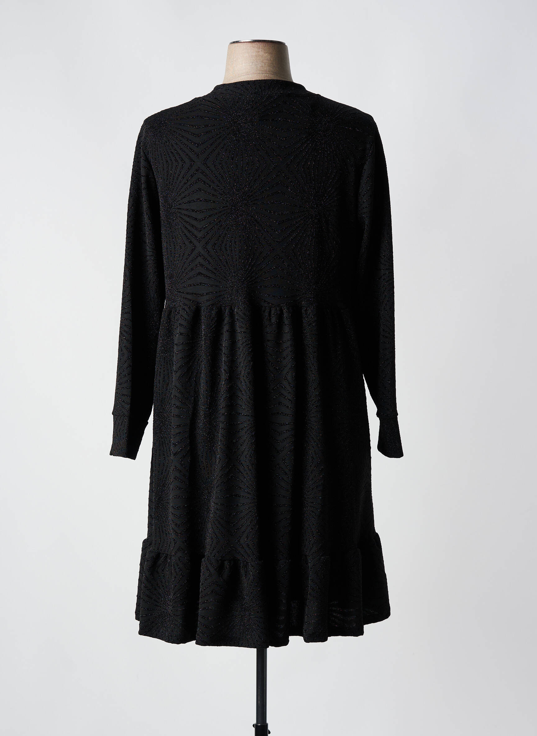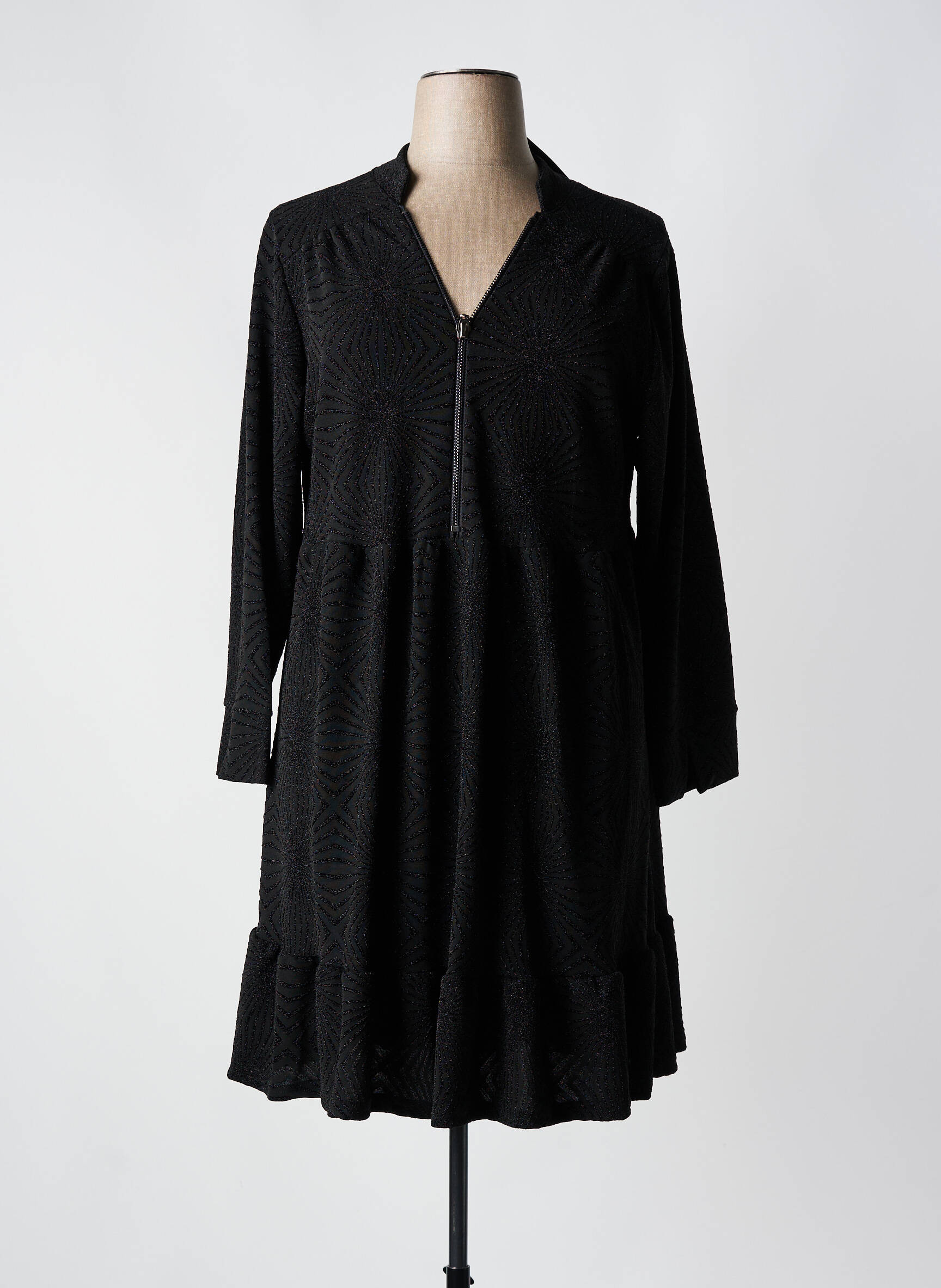 Imaginez une robe qui combine à la fois l'élégance discrète et un confort décontracté, comme celle-ci signée 2W PARIS qui joue avec une silhouette fluide et une longueur mi-longue idéale pour toutes les occasions. Conçue dans un tissu noir texturé, elle présente un col montant subtilement ouvert par une fermeture éclair métallique qui ajoute une touche moderne, tandis que ses manches longues et légèrement évasées équilibrent parfaitement le tombé aérien de la jupe ornée d’un volant délicat en bas, pour un effet à la fois chic et féminin.