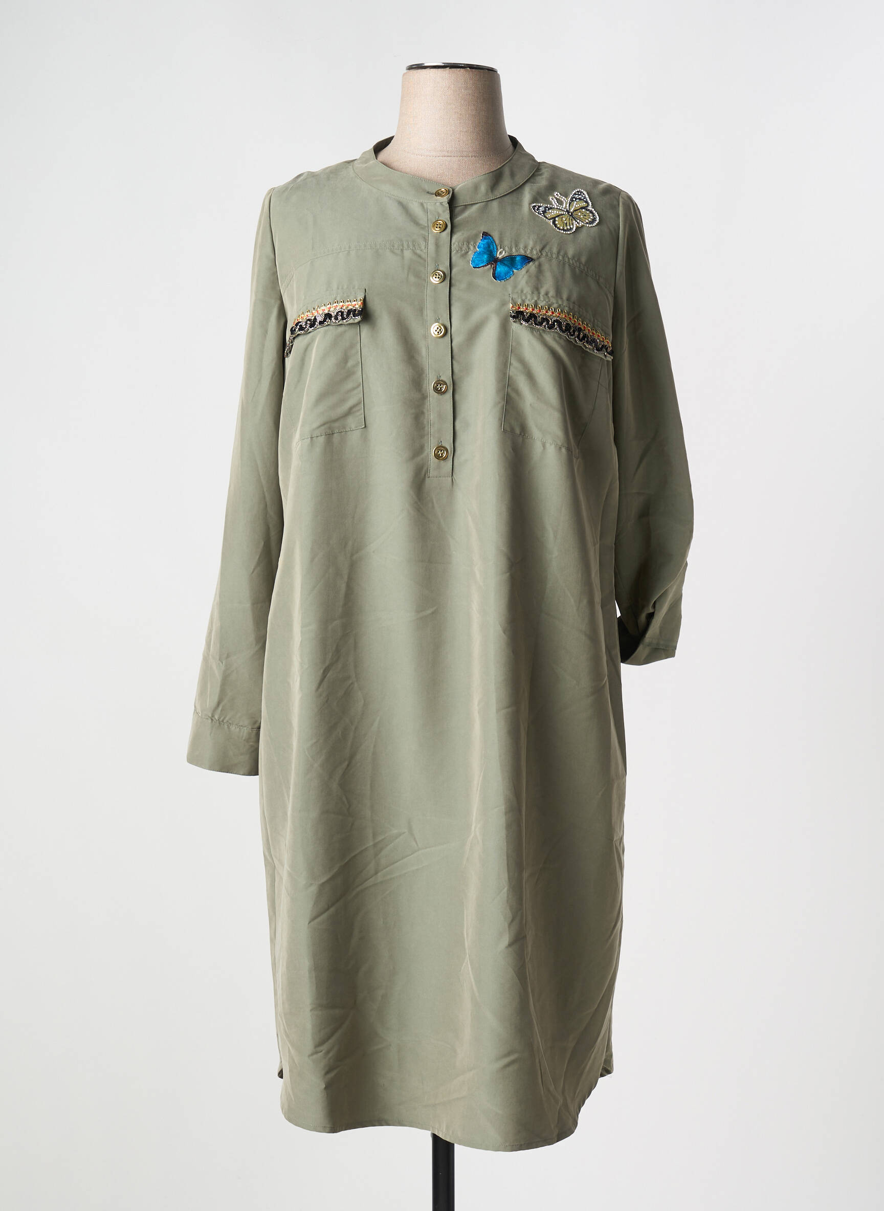 Offrez-vous un look tendance à petit prix avec cette robe mi-longue 5 HEARTS pour femme, idéale pour celles qui recherchent une pièce chic à prix malin. Sa coupe droite et confortable s’adapte facilement à toutes les morphologies tandis que les détails brodés, comme le papillon et la fleur sur le haut, apportent une touche d’originalité discrète. Les petits boutons et la patte boutonnée devant soulignent son esprit casual, parfait pour un style décontracté à prix mini. C’est le bon plan pour renouveler sa garde-robe sans se ruiner !