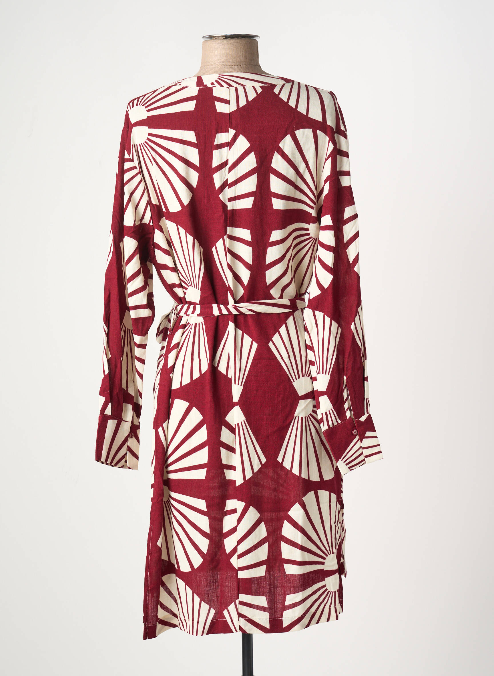 Craquez pour cette robe mi-longue AKOZ DE TOI à prix mini, parfaite pour celles qui aiment faire des économies sans renoncer au style. Son imprimé graphique bordeaux et blanc très tendance attire immédiatement le regard, tandis que la ceinture à nouer souligne joliment la taille pour une silhouette féminine. Avec ses manches longues et son col en V légèrement ouvert, elle est idéale pour toutes les occasions et trouvera facilement sa place dans votre dressing à prix tout doux.