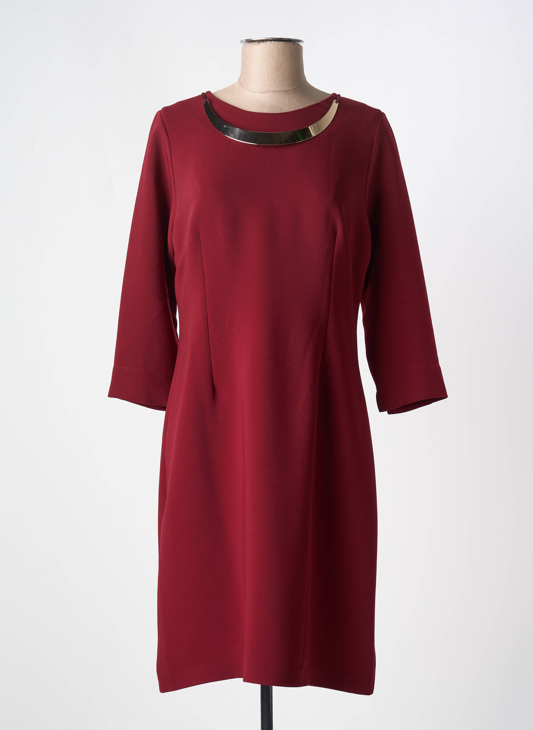 Voici une robe mi-longue ALAIN MURATI pour femme à saisir à prix mini, parfaite pour celles qui veulent allier élégance et économies. Sa couleur bordeaux apporte une touche sophistiquée tandis que sa coupe légèrement ajustée et ses manches trois-quarts permettent de la porter aussi bien en journée qu’en soirée. Le détail du col orné d’un empiècement métallique doré donne un esprit chic très tendance, tout en restant simple à accessoiriser pour varier les looks sans se ruiner. Une opportunité à ne pas laisser passer pour renouveler votre garde-robe sans compromis sur le style.
