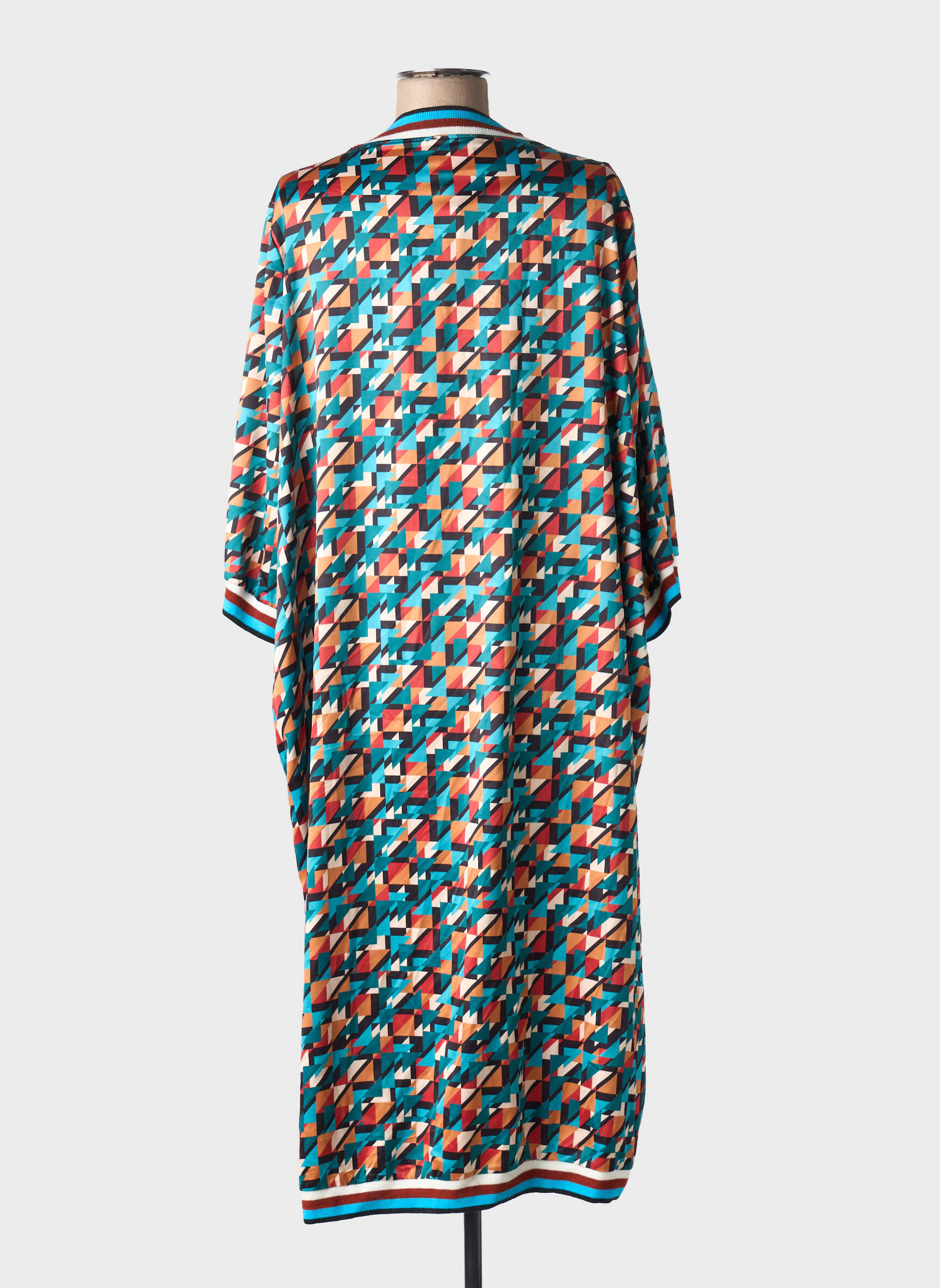 Profitez d’un véritable bon plan avec cette robe mi-longue AN II VITO pour femme, idéale pour apporter une touche graphique à votre garde-robe sans vous ruiner. Son imprimé géométrique coloré et son volume ample assurent un style tendance et confortable, parfait pour celles qui recherchent l’originalité à petit prix. La fermeture zippée devant et les finitions contrastées au col, aux poignets et à la base viennent souligner l’esprit sportswear chic de cette pièce unique.