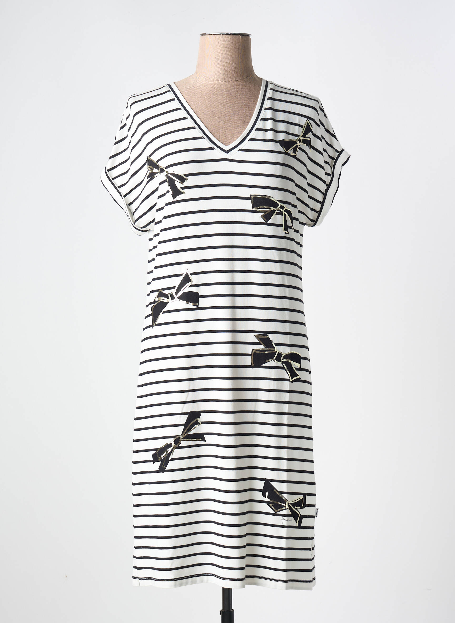 Offrez-vous un look élégant à prix mini avec cette robe mi-longue signée ANANKE, parfaite pour celles qui veulent allier style et économies. Son motif rayé intemporel rehaussé de touches graphiques, sa coupe fluide et son col en V flatteur en font le bon plan idéal pour renouveler votre garde-robe sans vous ruiner.