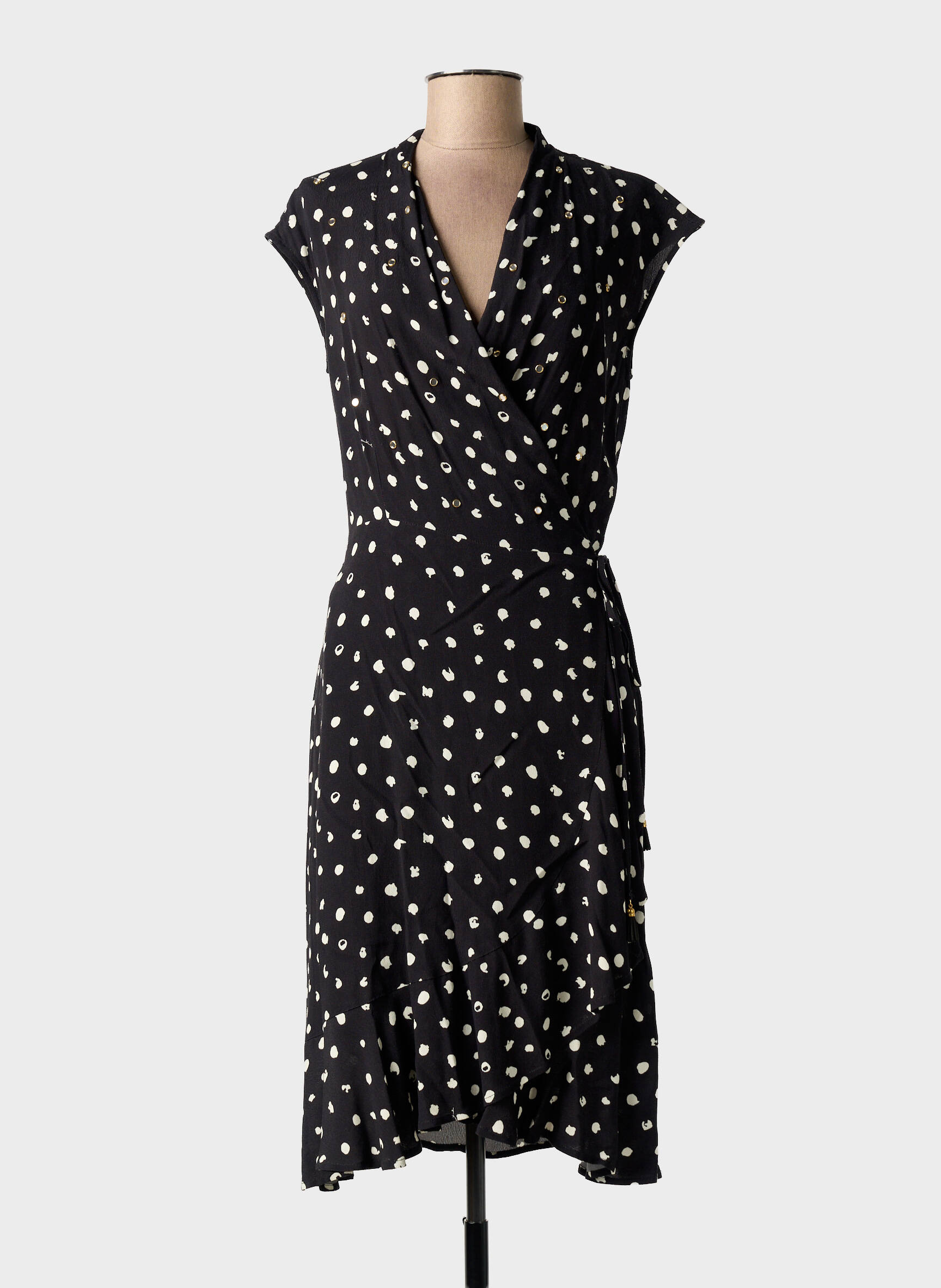 Craquez pour cette robe mi-longue ANANKE à prix mini, un bon plan mode à ne pas manquer pour toutes celles qui recherchent élégance et confort sans se ruiner ; son imprimé pois sur fond noir apporte une touche rétro tendance, tandis que sa coupe portefeuille et sa taille ceinturée mettent en valeur la silhouette avec féminité et délicatesse, parfait pour s’offrir un look distingué à petit prix.