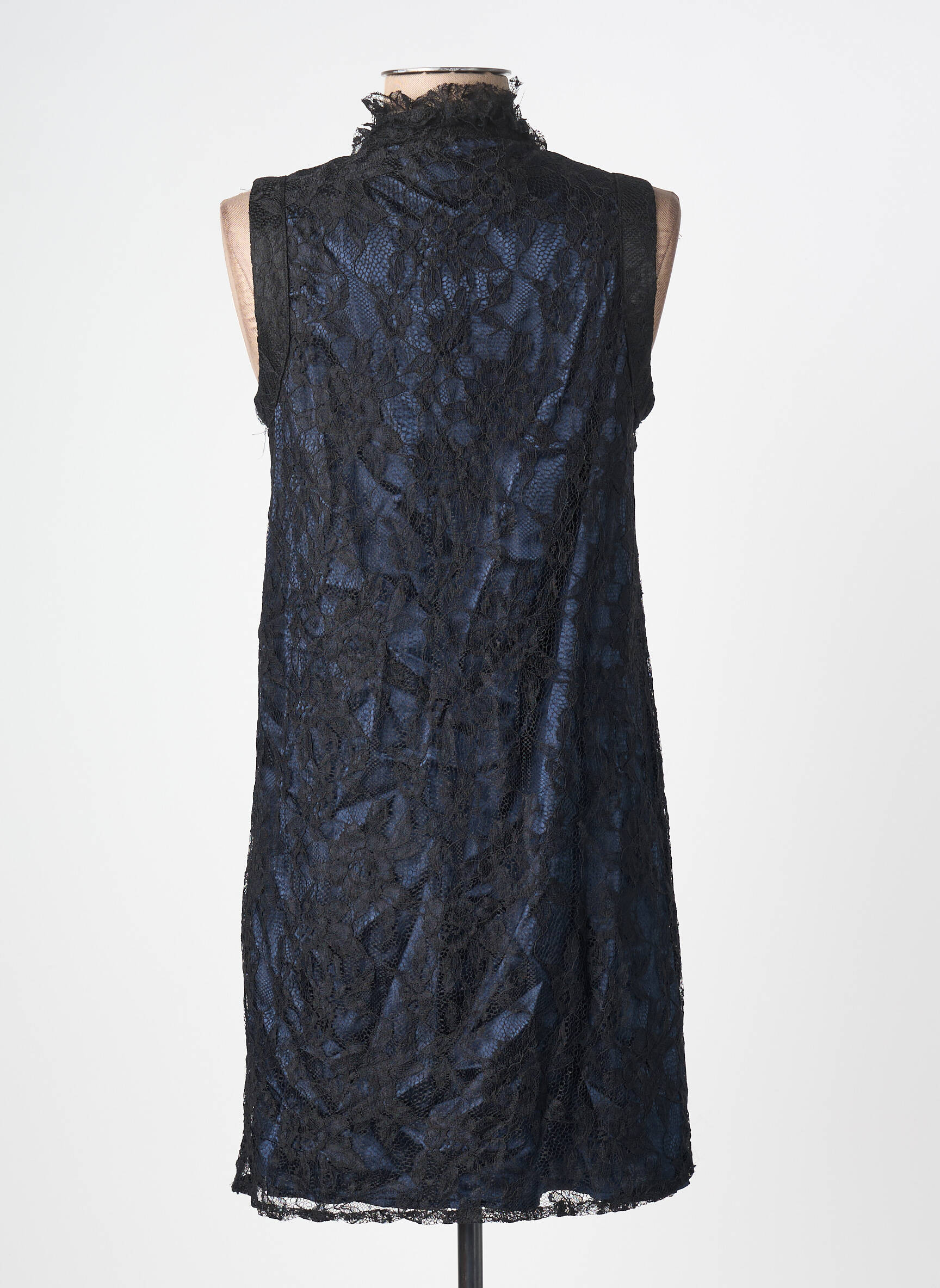 Craquez pour cette robe mi-longue de la marque ANGE, une véritable opportunité à prix malin pour apporter une touche chic à votre garde-robe sans vous ruiner. Ce modèle se distingue par sa matière légèrement brillante et sa superposition de dentelle noire qui joue avec la lumière, tandis que les volants apportent une belle originalité au niveau du col montant et de la poitrine. Parfaite pour une occasion spéciale ou simplement pour se faire plaisir, cette robe sans manches combine élégance et économie, vous permettant d’afficher un look sophistiqué à petit prix.