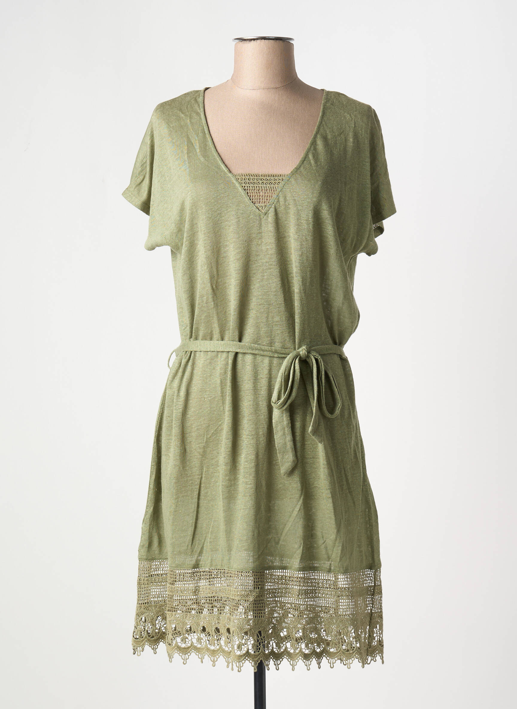 Craquez pour cette robe mi-longue signée Ateliers de la Maille, idéale pour allier élégance et petit prix. Son tissu fluide couleur kaki sublime toutes les silhouettes tandis que sa ceinture à nouer souligne délicatement la taille pour une allure féminine et décontractée. Les finitions en dentelle au bas de la robe apportent une touche de raffinement et d’originalité, parfaites pour faire sensation sans se ruiner. Profitez d’une pièce tendance à prix doux et misez sur un bon plan mode pour renouveler votre dressing sans compromis.